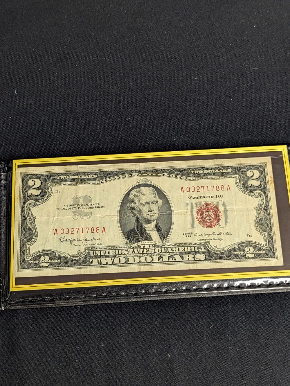 A Two Pack 1935 $1 Note Blue Seal And A 1963 $2 Note Red Seal. A US commemorative Gallery issue.& nbsp;
