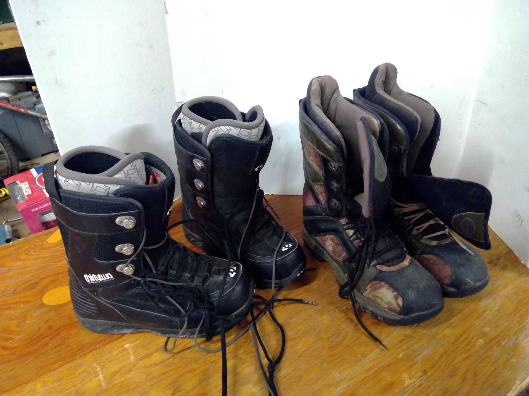 Two Pairs of Boots - Camo & Snowboard - Unknown Size, Approx. 9-11