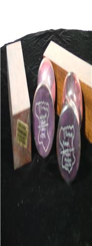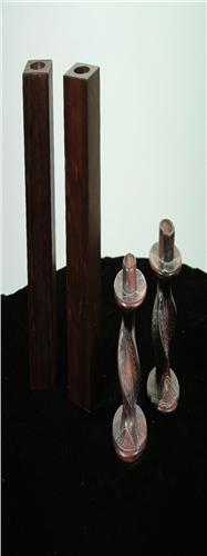 (Brazil 20th Century) Rectangular candle holder made of native wood, 7" by 2" each. (Kenya 20th Century) Turned stone, inscribed on bottom "Kenya Turkana Masai Mara", 4" by 2 1/2" each.