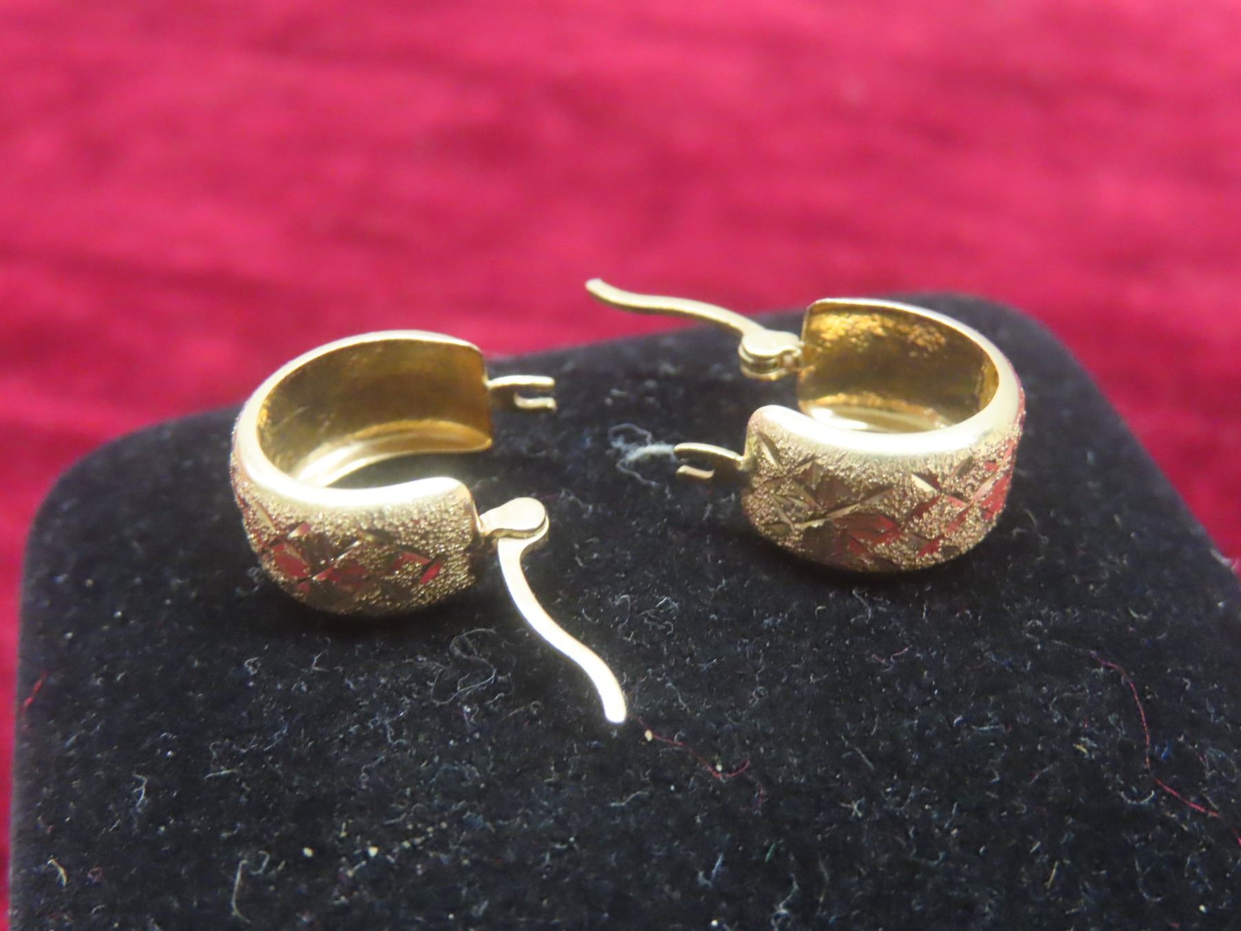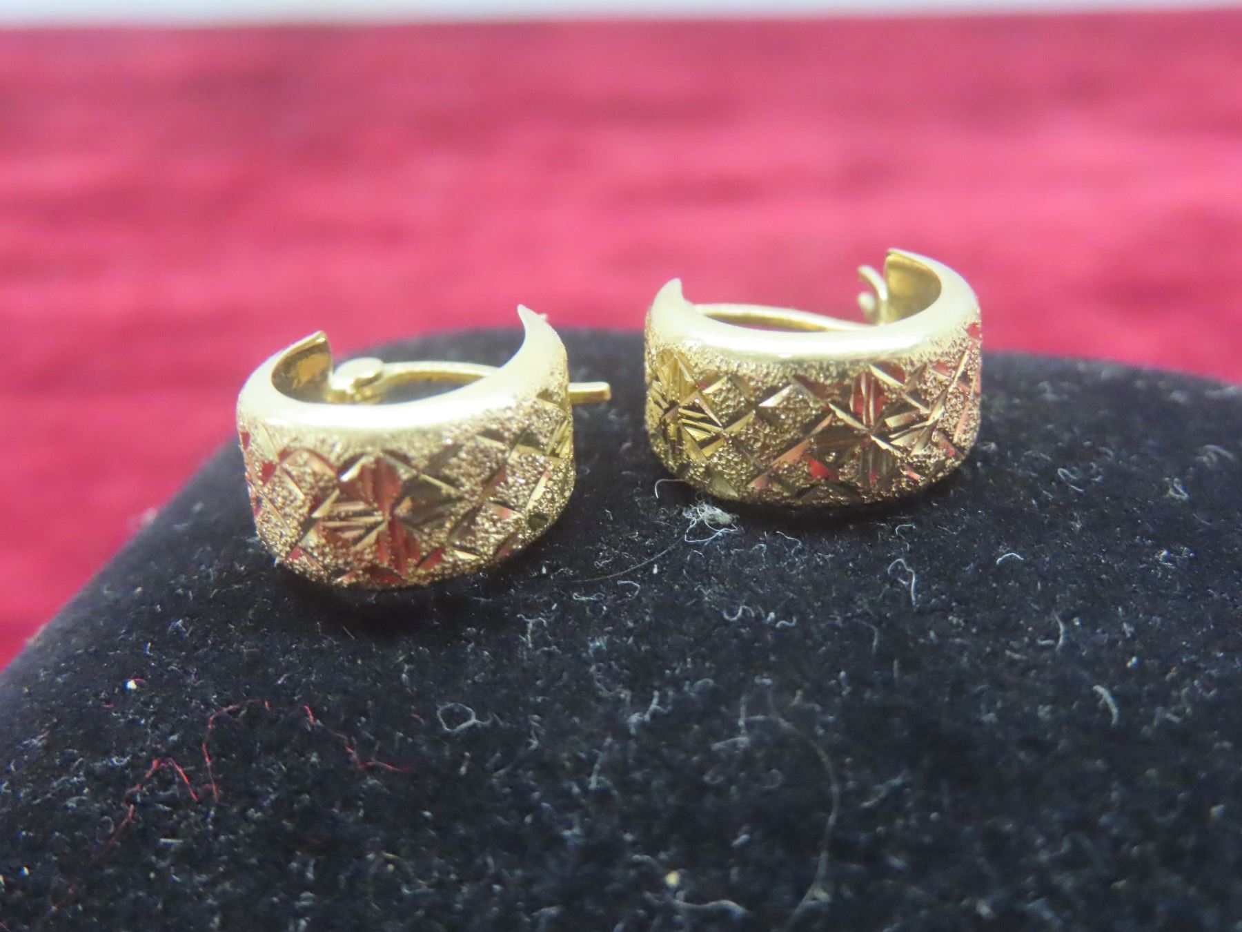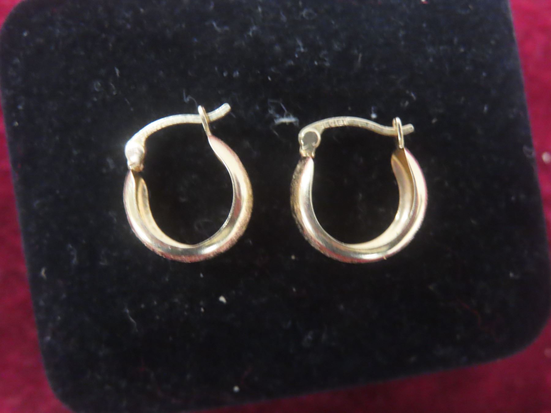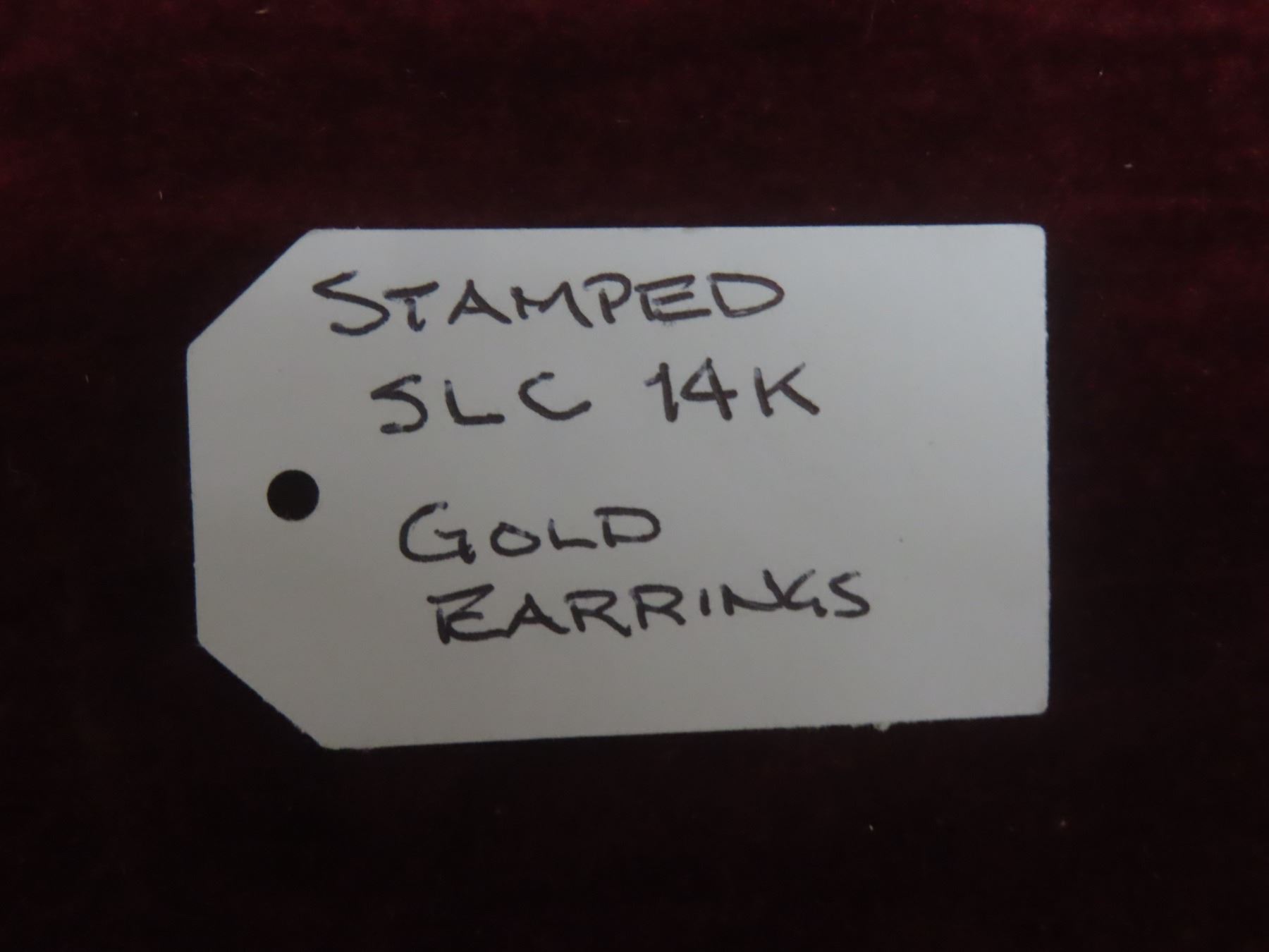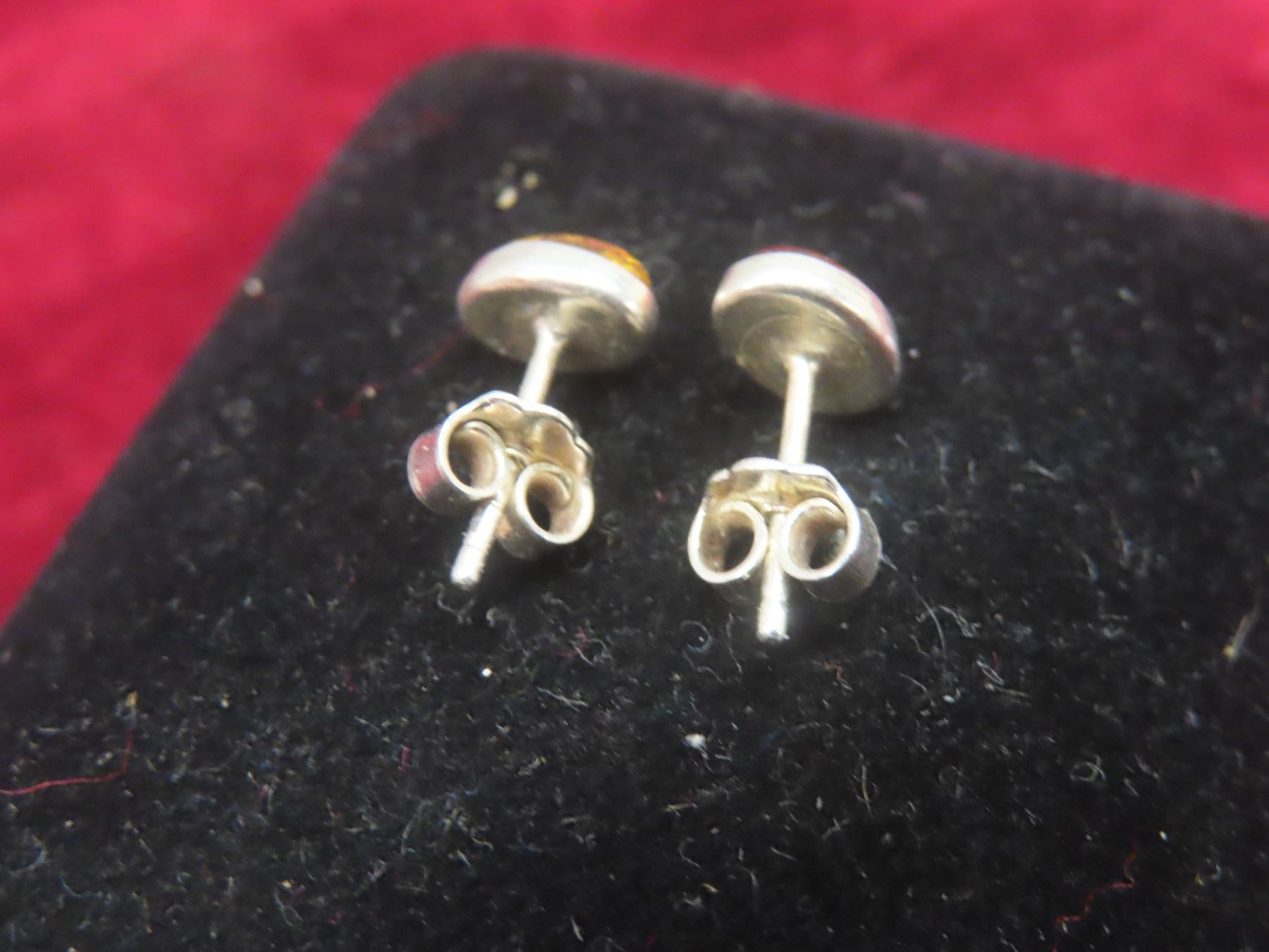 Two Pairs of Earrings: 14K SLC (Stamped) Gold Hoops and Stamped 925 Sterling Silver and Amber Studs