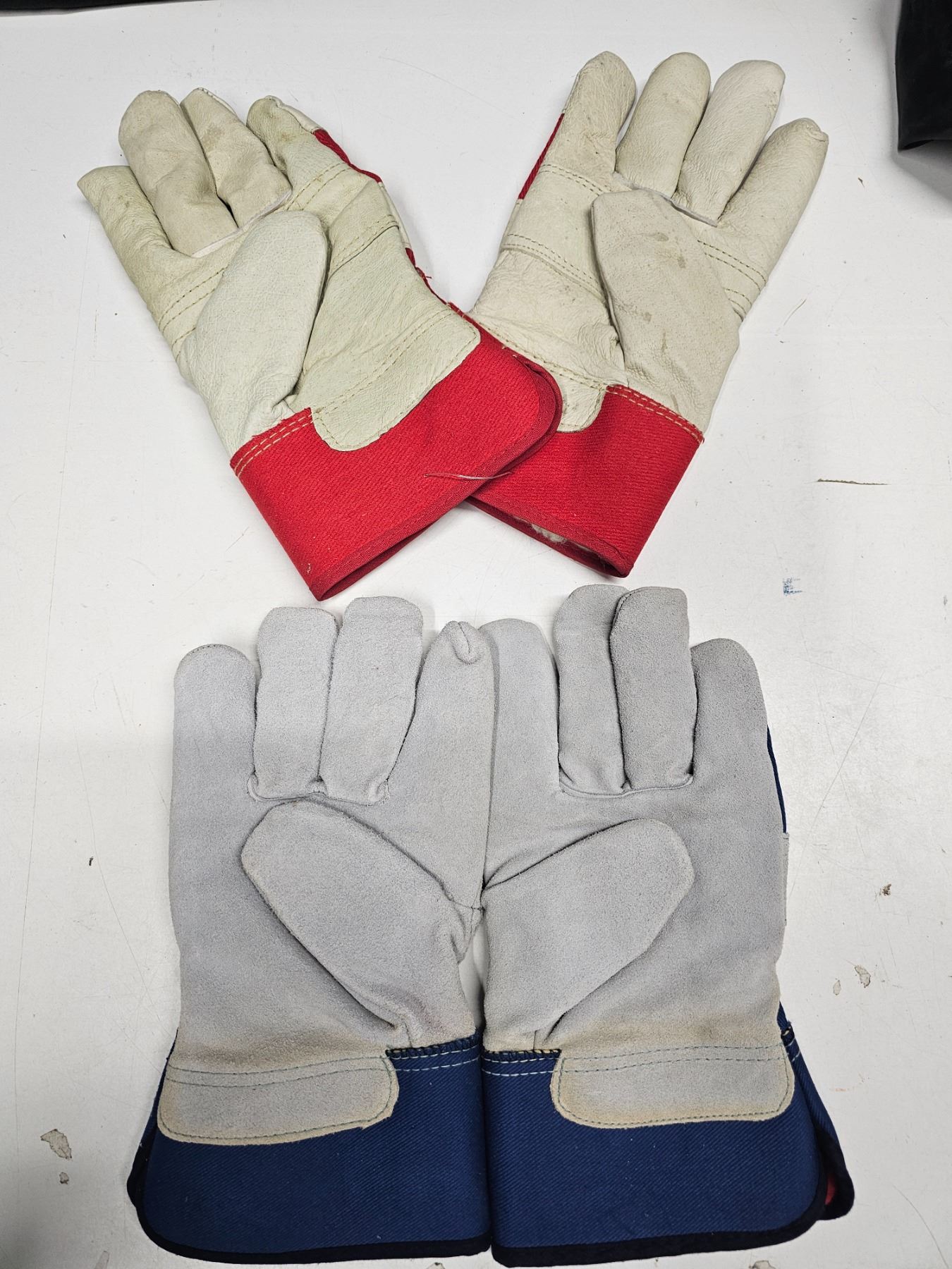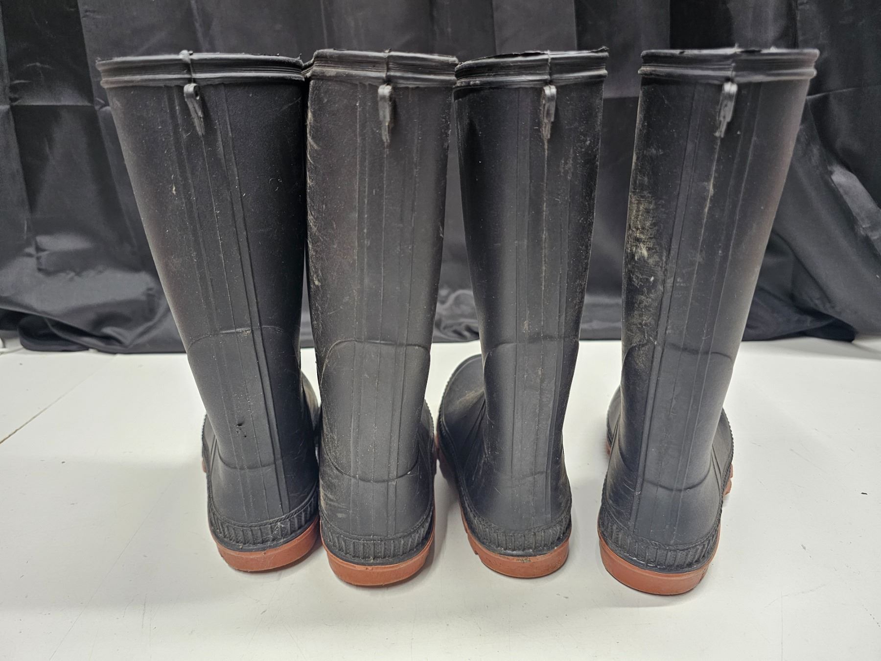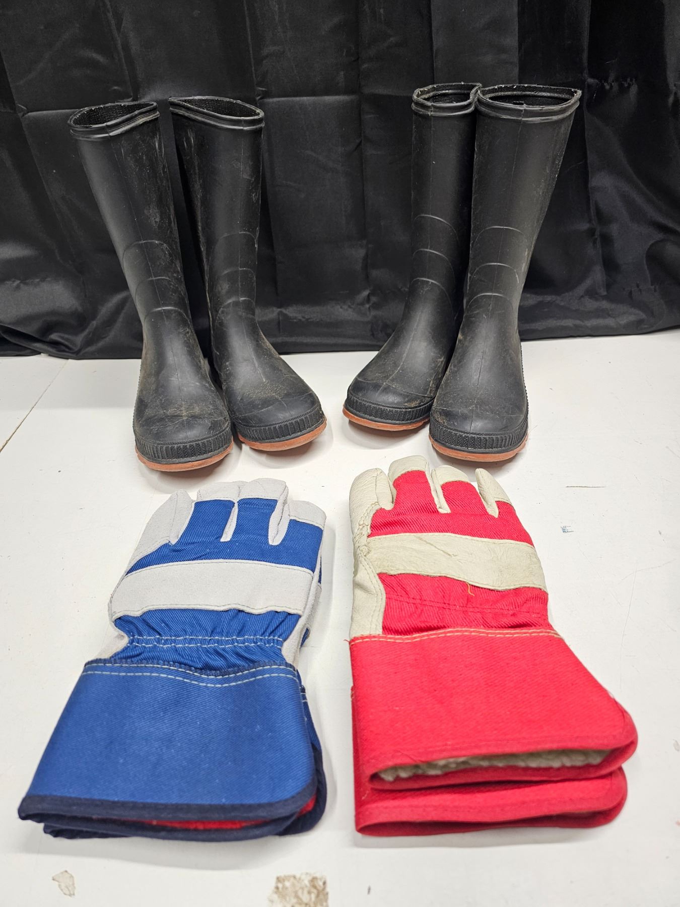 Two Pairs of Rubber Boots (Children's Size 3 and Size 4) and Two Pairs of Unused Work Gloves