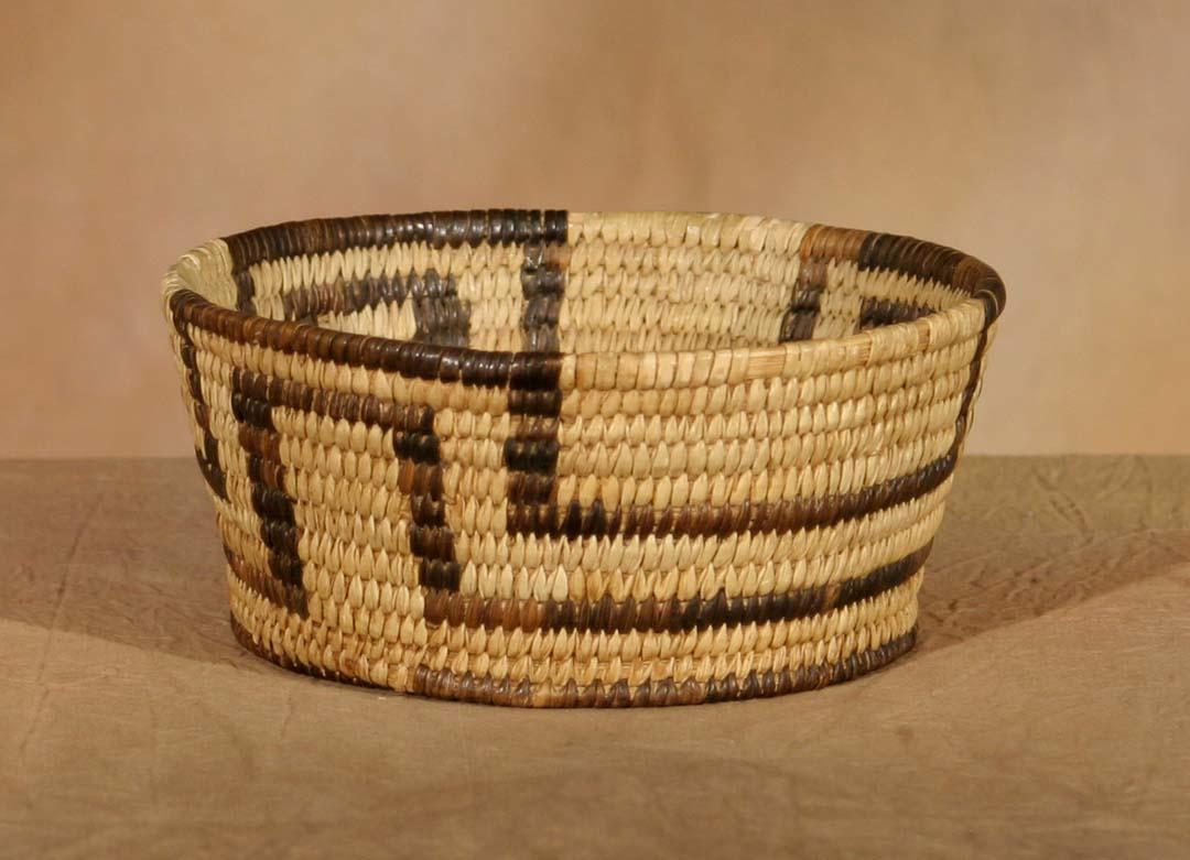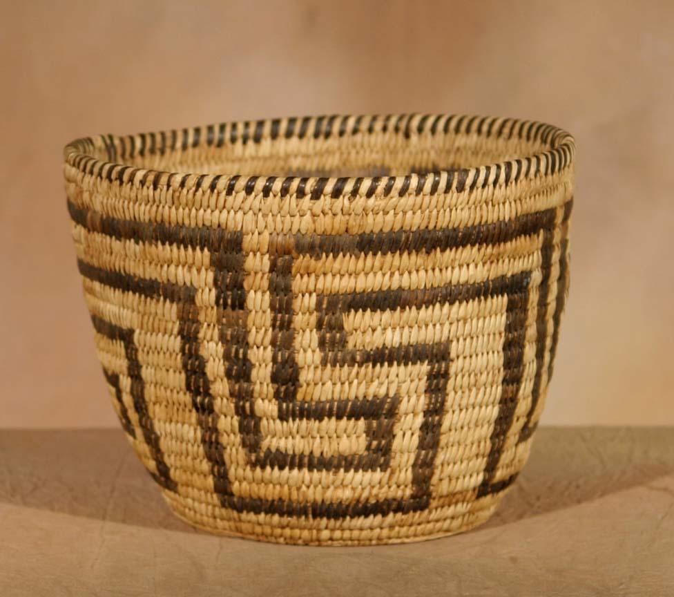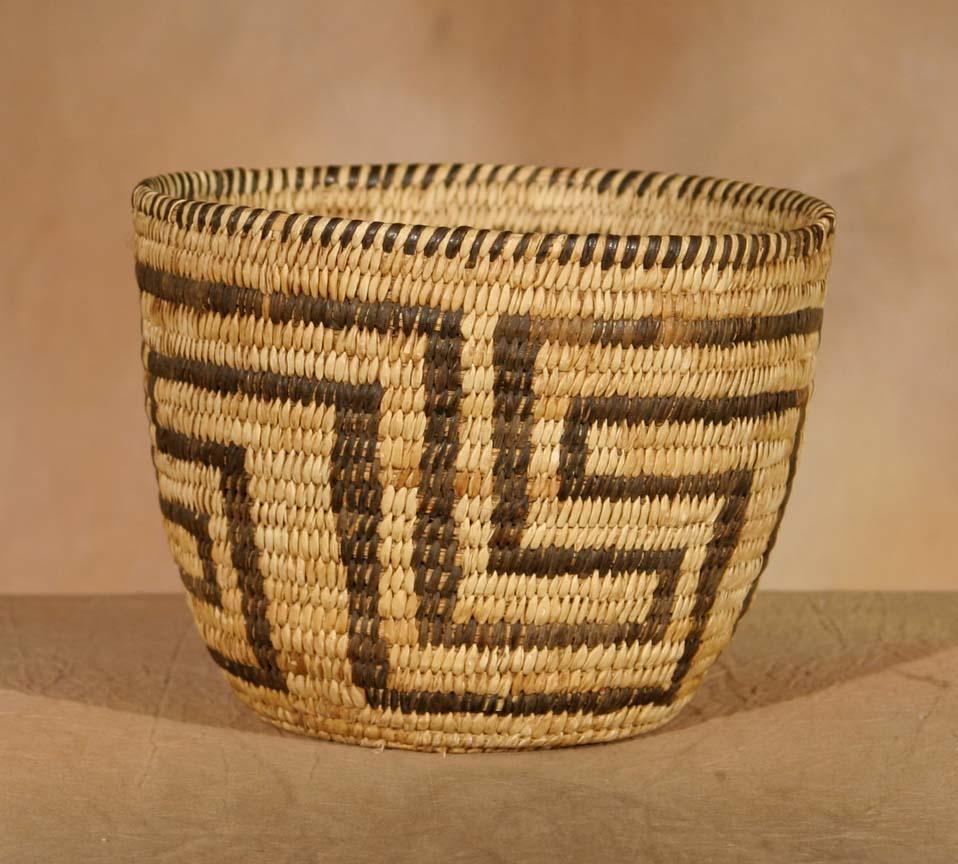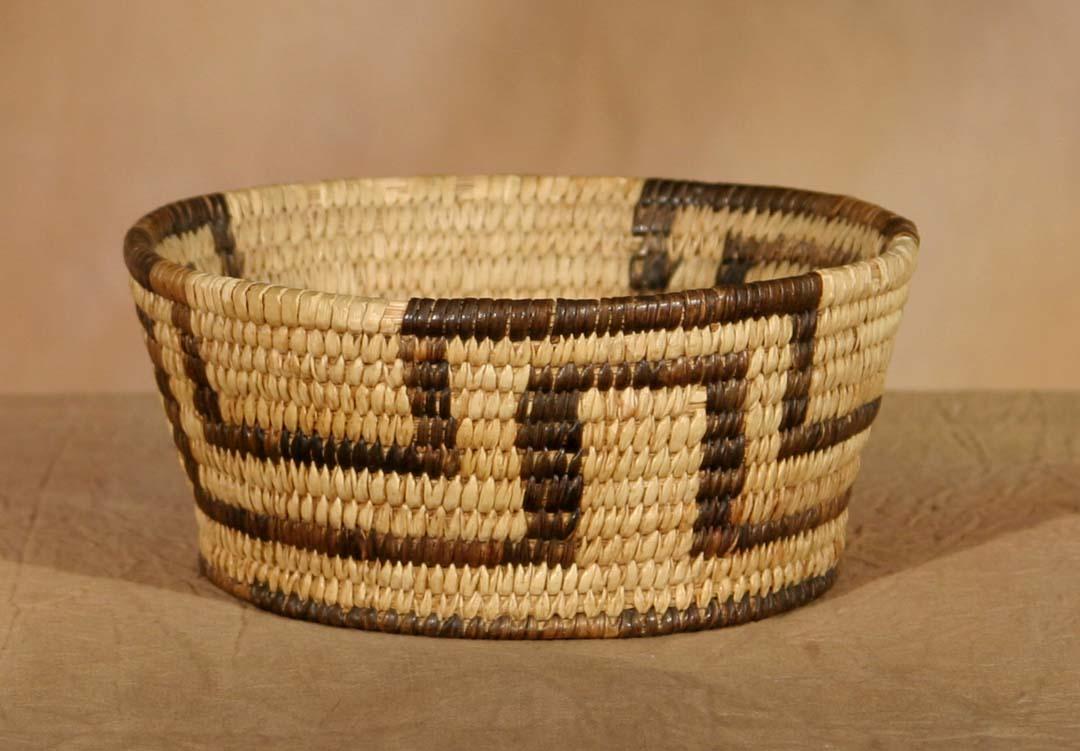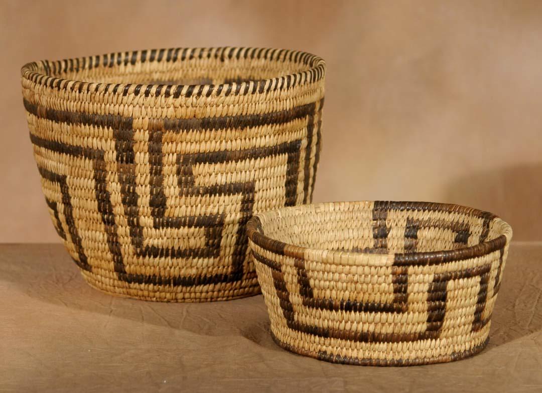 Two Papago Baskets. 6 ½" x 8 ½" & 3 ¼" x 7". Geometric designs. Circa 1950s. (est $200-300). For condition reports please visit: www.auctioninsantafe.com/cr2011.pdf