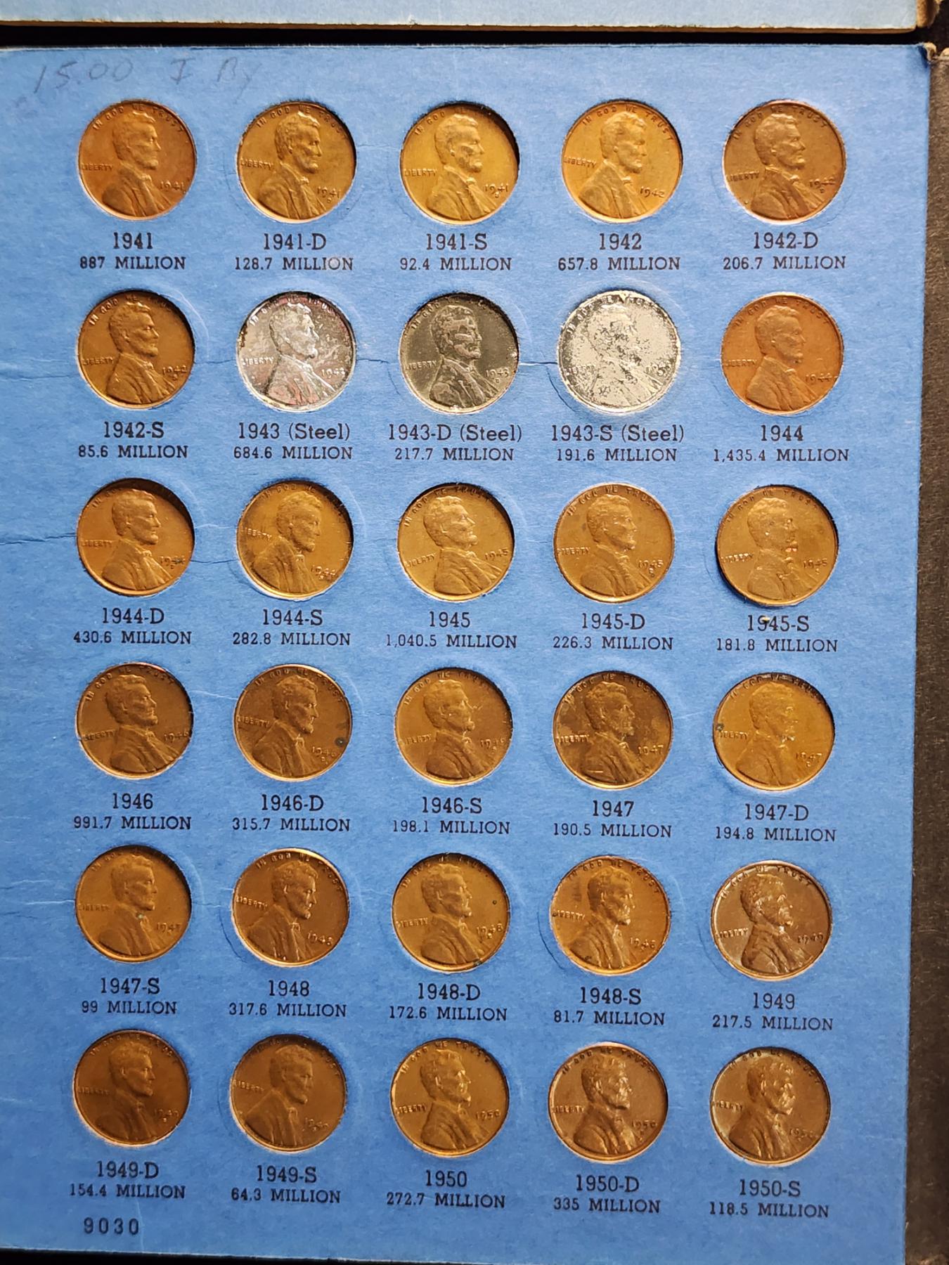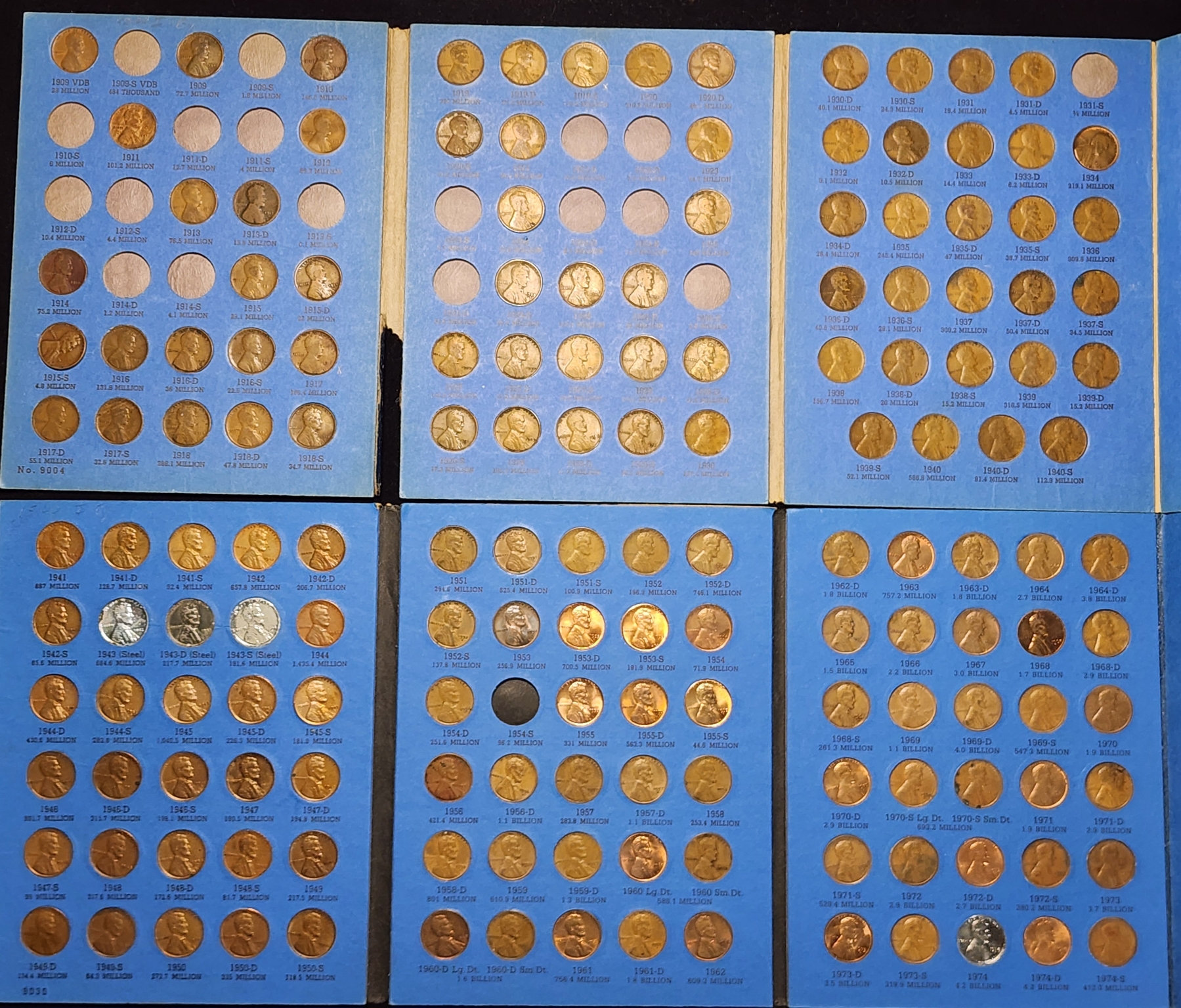 Two Partially Filled Penny Books Ft. Over $1.50 in Face Value Pennies - Many Wheat & Even Steel Cents!