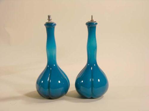 Two pear design barber bottles, aqua, both with stoppers. No chips or cracks.