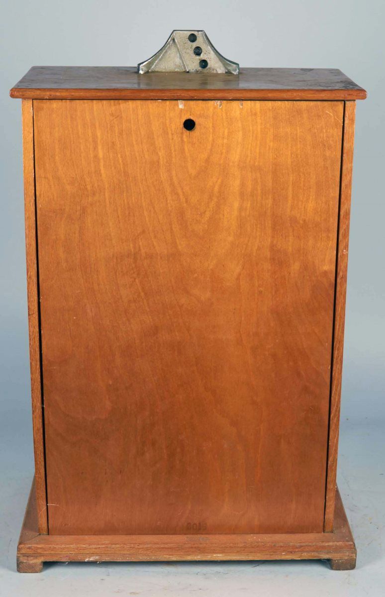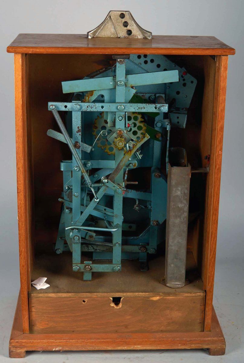 The Twelve Win gaming machine is a two-pence coin-operated, single spinning disk that resembles a clock. Mechanism is housed in a wooden case. Circa 1940s. Condition (Excellent). Size 19-1/2" x 30" x 12-1/2"