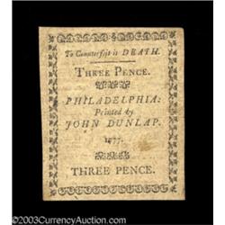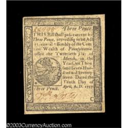 <TABLE cellSpacing=0 cellPadding=0 width="100%" bgColor=#000000 border=0><TBODY> <TR><TD width="100%"><TABLE cellSpacing=1 cellPadding=3 width="100%" border=0><TBODY><TR><TD width="100%" bgColor=#79735c><FONT face=arial color=#ffffff size=3><B>Description</B> </FONT></TD></TR><TR><TD width="100%" bgColor=#ffffff><FONT face=arial size=2><B>Two Pennsylvania April 10, 1777 notes.</B></I> A Small Change 3d note grading <B>About New</B></I> and an <B>Extremely Fine</B></I> red and black L4 note with a few repaired splits. (225-up ) (2 notes) </FONT></TD></TR></TBODY></TABLE></TD></TR></TBODY></TABLE><BR><TABLE cellSpacing=0 cellPadding=0 width="100%" bgColor=#000000 border=0><TBODY><TR> 2 notes Important notice: Heritage usually auctions material at the rate of 200-250 lots per hour. On some occasions eBay Live bid software or the Internet may not be able to keep up with the pace of the auction. We recommend placing a realistic absentee bid now as insurance to avoid disappointment. Occasionally the auctioneer may eliminate or reject an eBay Live bid, and the auctioneer may also reopen a lot after the close of the eBay live bidding (usually because we missed an audience bid), and may reject your bid even if it shows you as the winning bidder. By bidding via eBay Live, you agree that Heritage may award the lot to another bidder at its sole discretion under the circumstances described above or any other reasonable circumstances. Also please note that all Heritage lots purchased through eBay Live carry a 20% Buyer's Premium. Please make sure you read the Terms and Conditions before you bid.</TR></TBODY></TABLE>