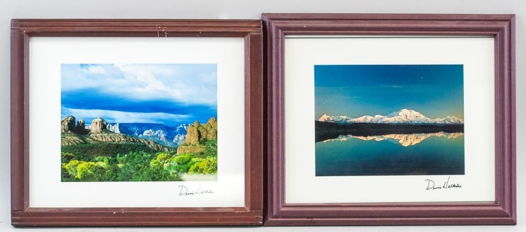 Photography on paper, framed. Featuring two stunning scenery photos. Printed signature Dennis Halkides to the bottom right. Frame: 24 x 29 cm (9.5 x 11.5 in).
