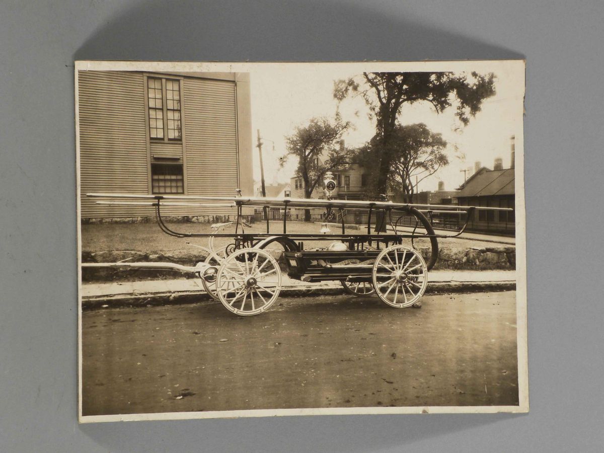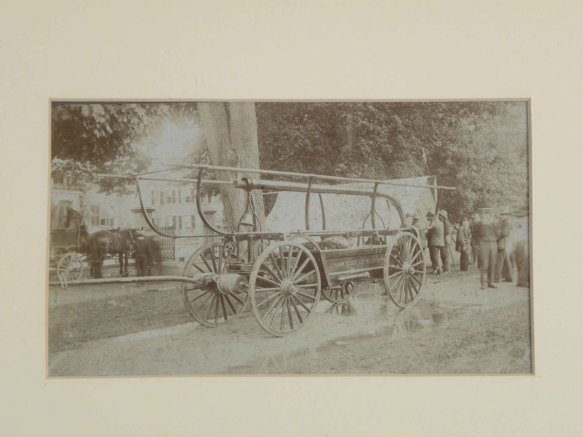 Lot of two photos of Fireman's hand pumpers. Rough and Ready No. 2 and Columbian No. 5. 7 1/2 X 4 1/4 and 10 X 8 inches.