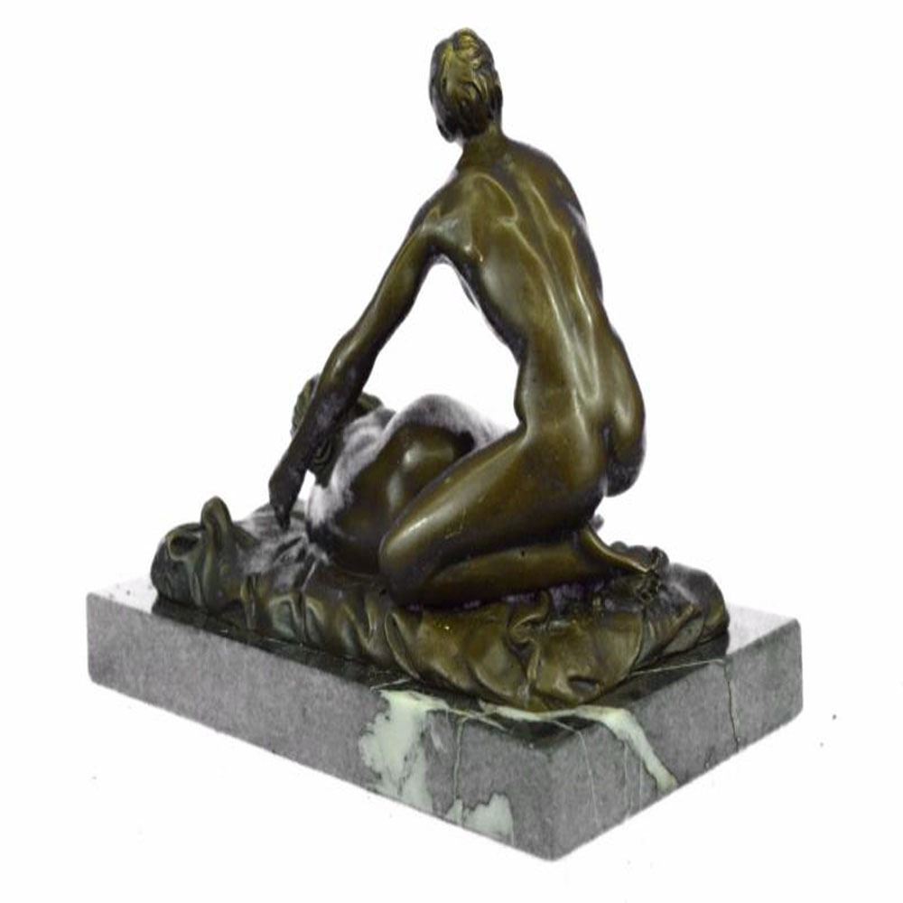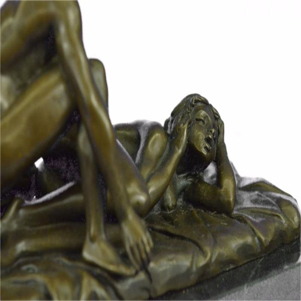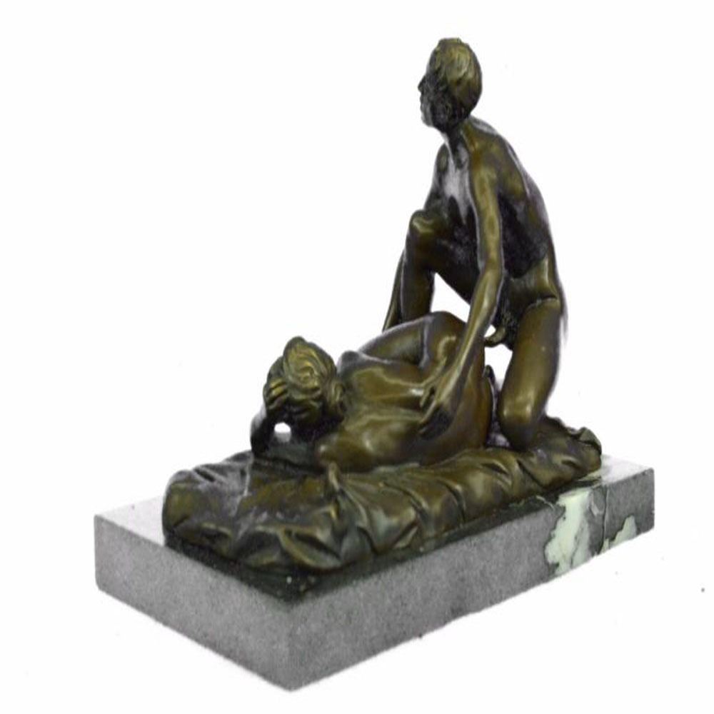 The Sculpture here is displaying a young couple where the male is sexually satisfying the sexy girl in an amazing Vienna Art object made of 100% finest Bronze. This erotic Vienna Bronze is the captured moment of great heated sex. The Bronze Sculpture of a horny couple, notably the experienced older one and the inexperienced virgin, can be called a real eyecatcher in each collection on Vienna Art Sculptures. The figure is a hot and stunning picture of endless desire and an absolute musthave. Bronze Dimensions with Marble Base: Height 6 X Width 7 inches. Weight: 6 LBS.