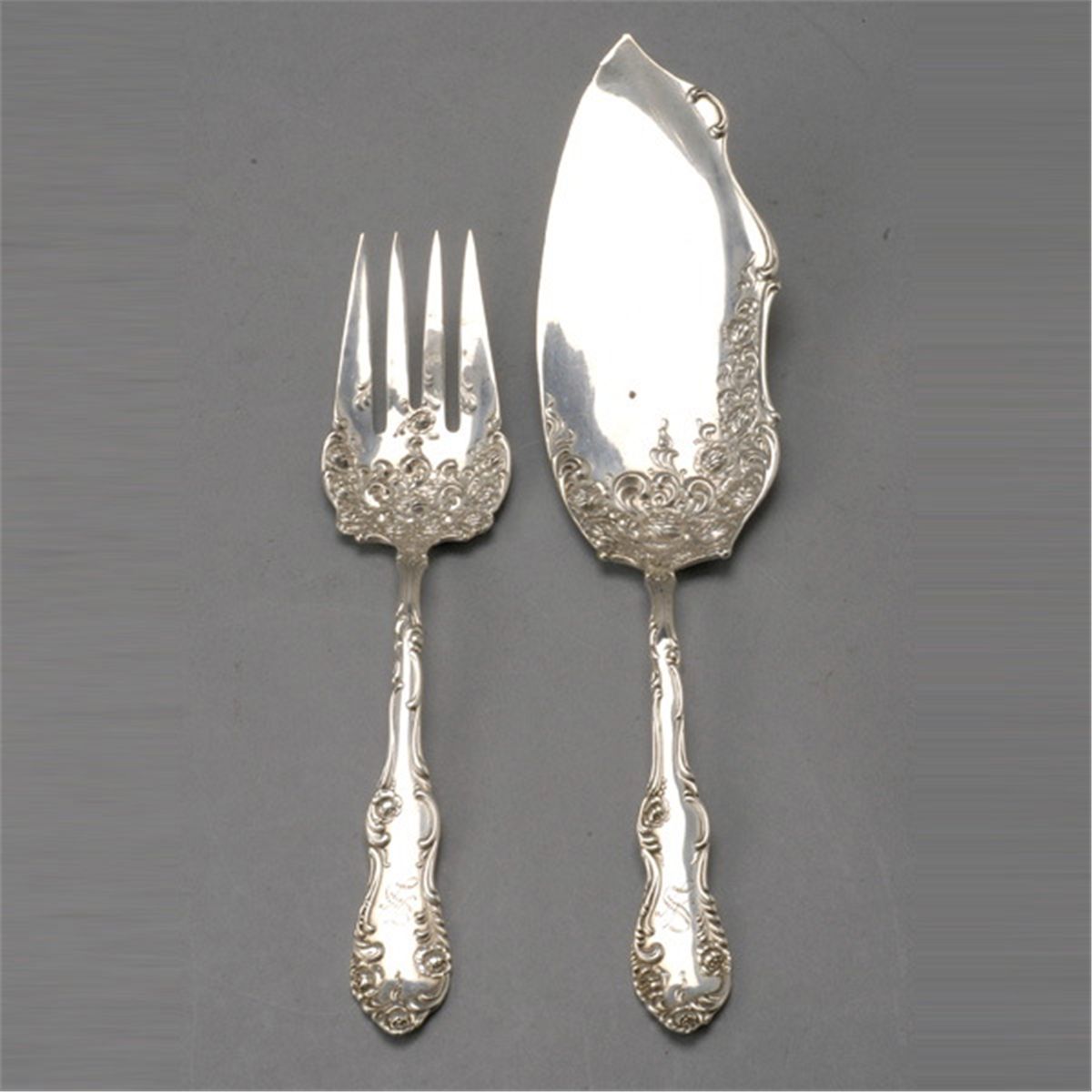 Two Piece Sterling Fish Set {Total silver weight 5.92 troy oz; length of longer 11 3/4 inches}