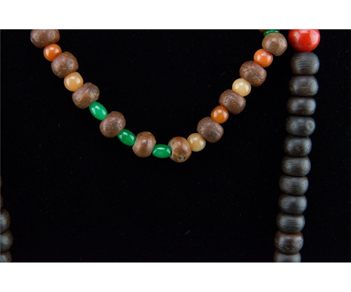 Two pieces of Chinese Buddhist prayer beads. Made from wood and assorted beads; Provenance: Ma Collection Toronto; D: 31 cm, 108 grams each