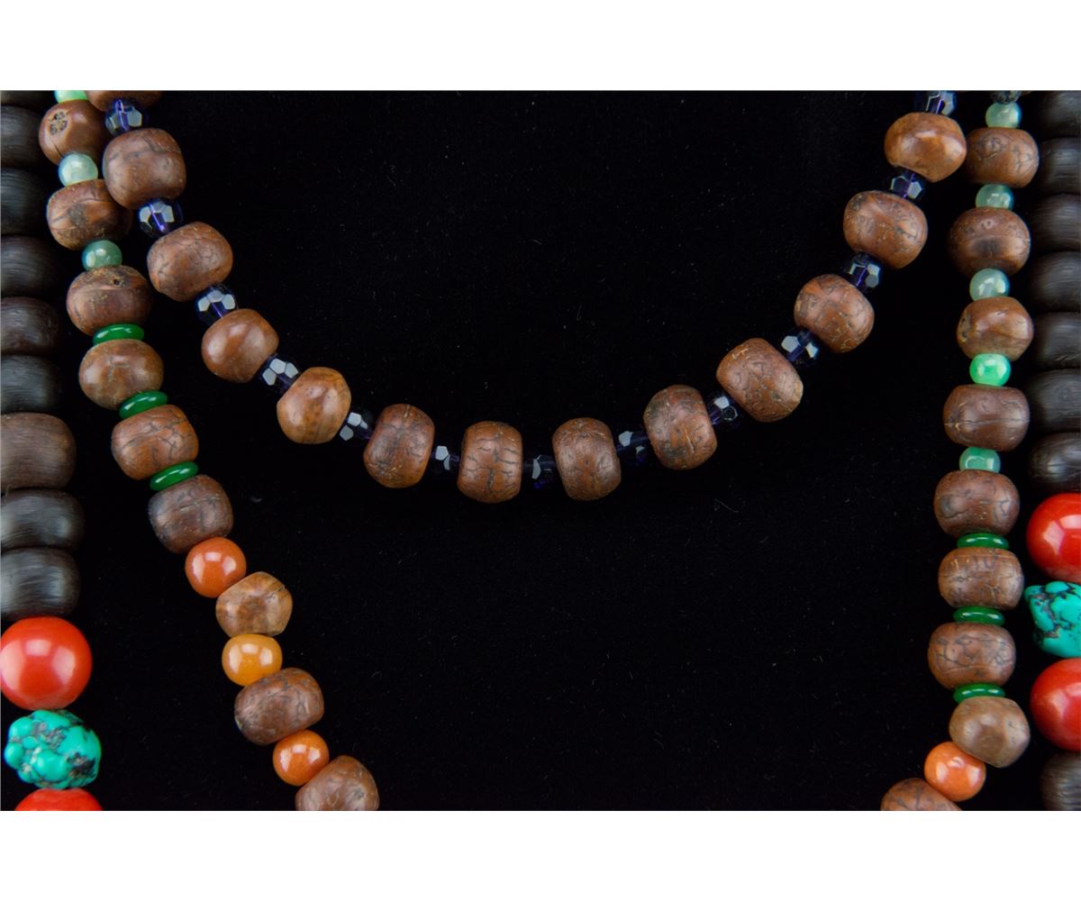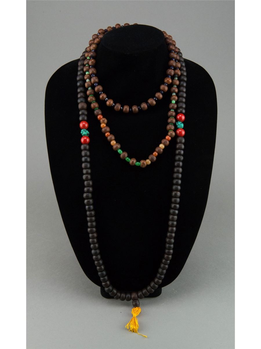 Two pieces of Chinese Buddhist prayer beads. Made from wood and assorted beads; Provenance: Ma Collection Toronto; D: 31 cm, 108 grams each