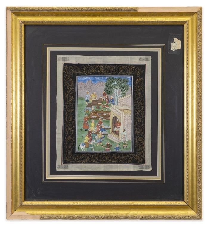 - Largest: GIlt framed figural painting on linen. Features men preparing and gathering for a feast.