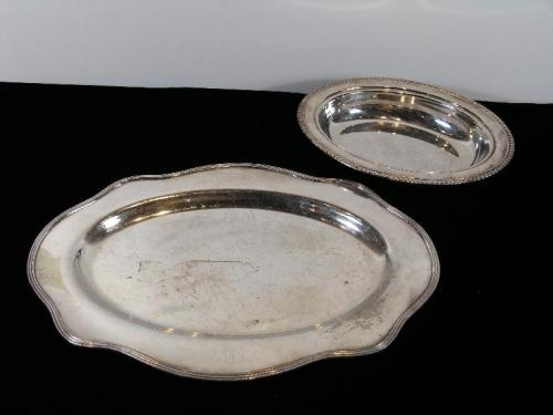 (American) Tray, hallmarks, 1" by 18" and Coil-rimmed bowl, 1 3/4" by 11 1/2".