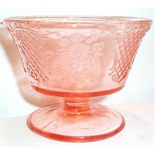 We are offering you two (2) lovely Pink Normandie, Bouquet and Lattice, Footed Sherbets all for one money. Each sherbet is in SUPERIOR condition with no chips, cracks, or dings and they measure about 3.50" in diameter and stand 2.75" tall. I realize my photo only shows one sherbet but you will be purchasing two (2). These were made by Federal Glass Company c: 1933.