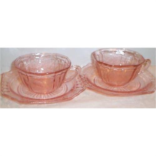 We are offering you two (2) lovely Pink Mayfair, Open Rose, Depression Glass Cups and Saucers all for one money. Each cup and saucer is in SUPERIOR condition with no chips, cracks, dings or scratches and the cups measure 2.75" in diameter and stand 2" tall and the saucers are each 5.75" square. The saucers are actually the 5.75" plates that were used for saucers. There are no cup rings in these plates.