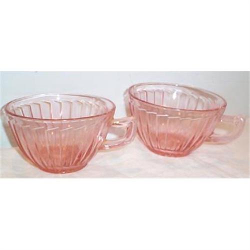 We are offering you two (2) lovely Pink Depression Glass Sierra, Pinwheel, cups all for one money. Each cup is in SUPERIOR condition with no chips, cracks, or dings and they each measure 3.50" in diameter and stand 2" tall. Sierra was manufactured by Jeannette Glass Company.