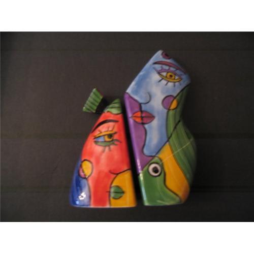 Two Picasso inspired puzzle piece Salt and pepper shakers (3 in stock all slightly different, ask to see other pictures, Approx. 4.5? tall 2? Wide) $25. for set