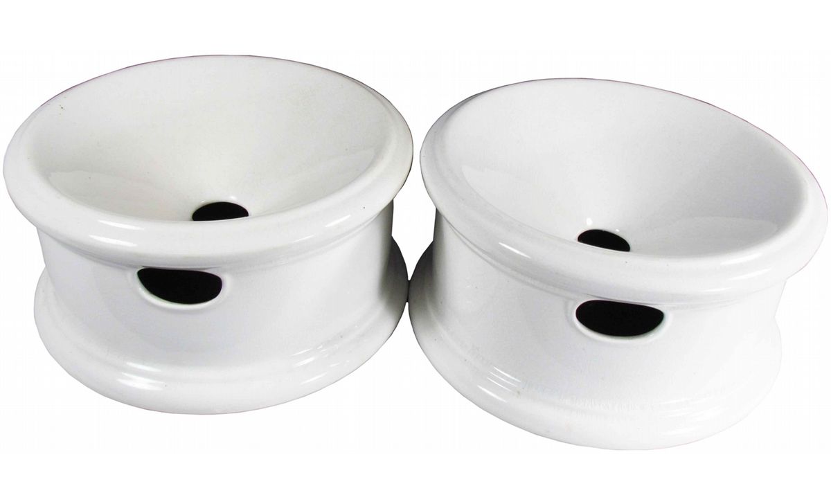Two Porcelain Barber Shop Spittoons. Normal crazing and a couple tiny chips otherwise excellent condition. 5 1/2 inches tall X 10 1/2 inch diameter.