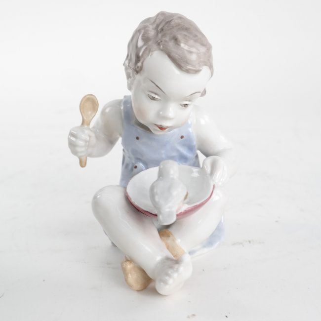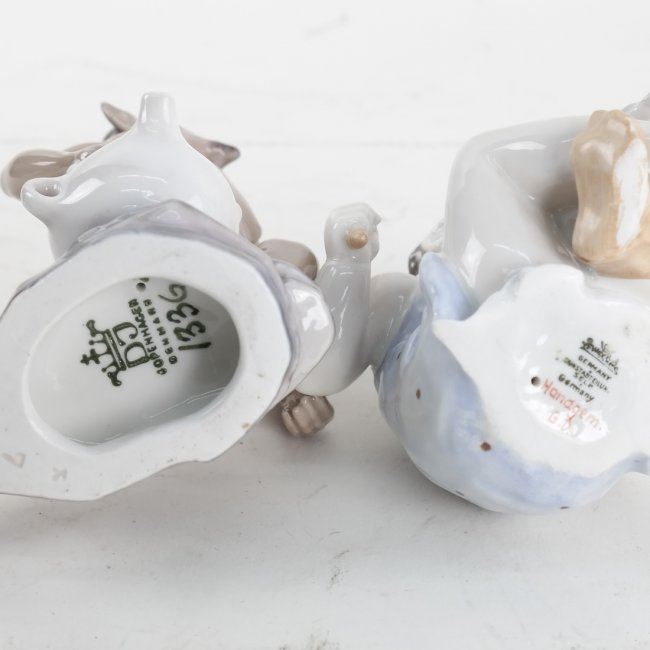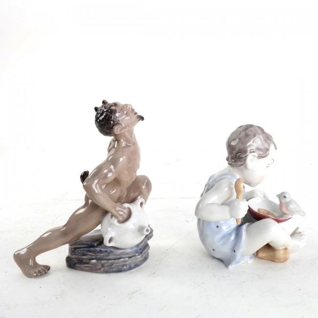 Comprising: 1.) Rosenthal figure of a child holding a bird. 2.) Danish allegorical figure with jug. [4 1/4" to 5" H]. In good condition.