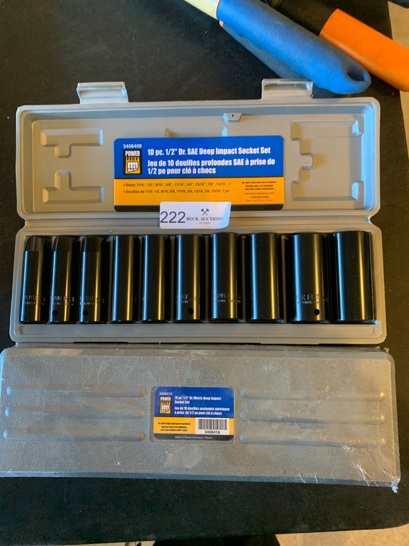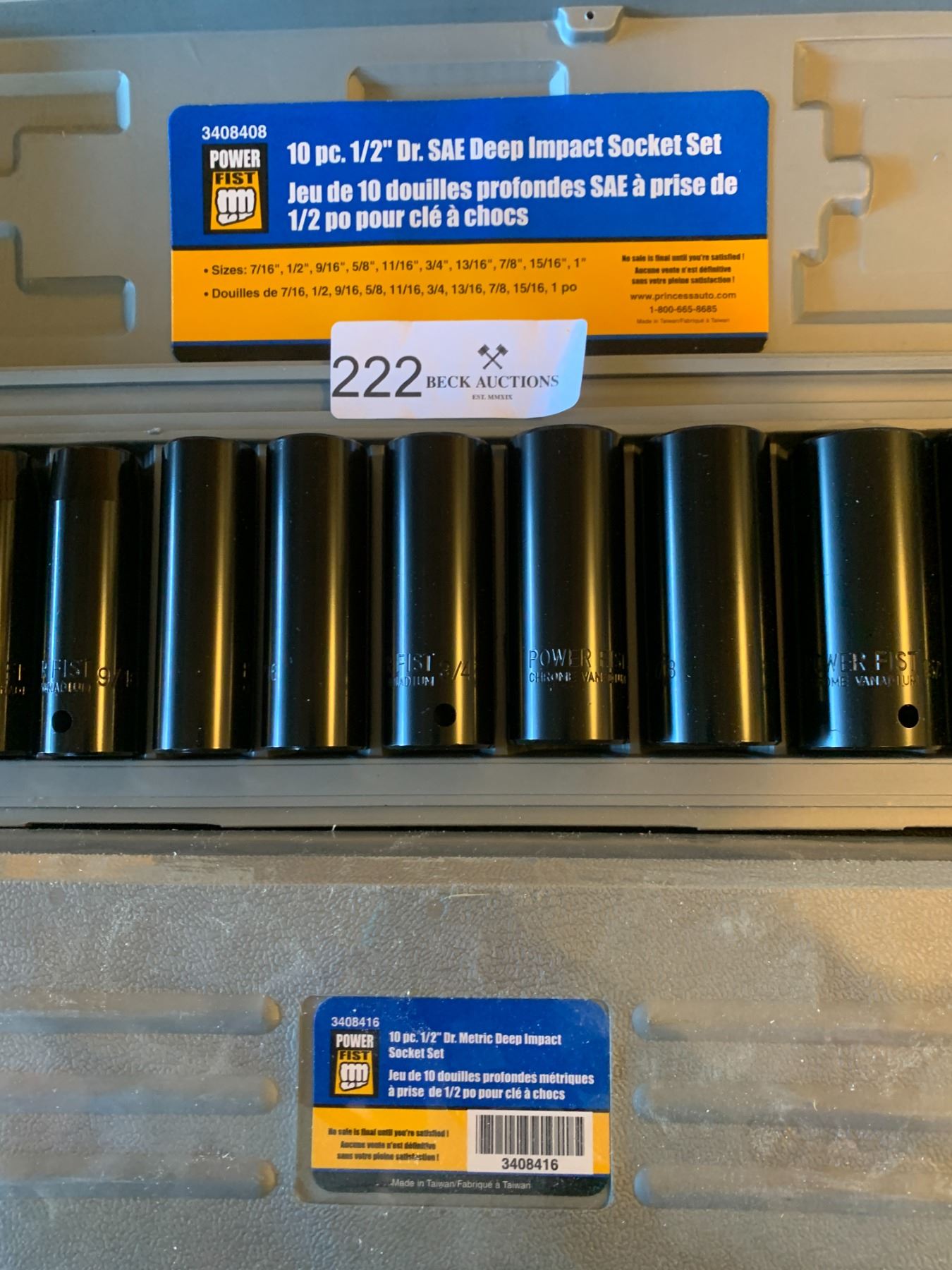 Two Power Fist Socket Sets 1/2" Dr. Piece Metric Deep Impact and 10 Piece 1/2" SAE Deep Impact
