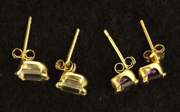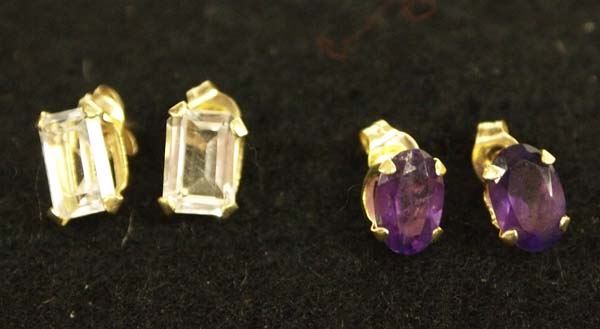 Two Pr 12 Kt Gold Plated Earrings, includes 1) 12Kt Gold Plate and Lab Diamond 3/16'' x 1/8'' and 2) 12 Kt Gold Plate and Amethyst 3/16 x 1/8'', beautiful earrings