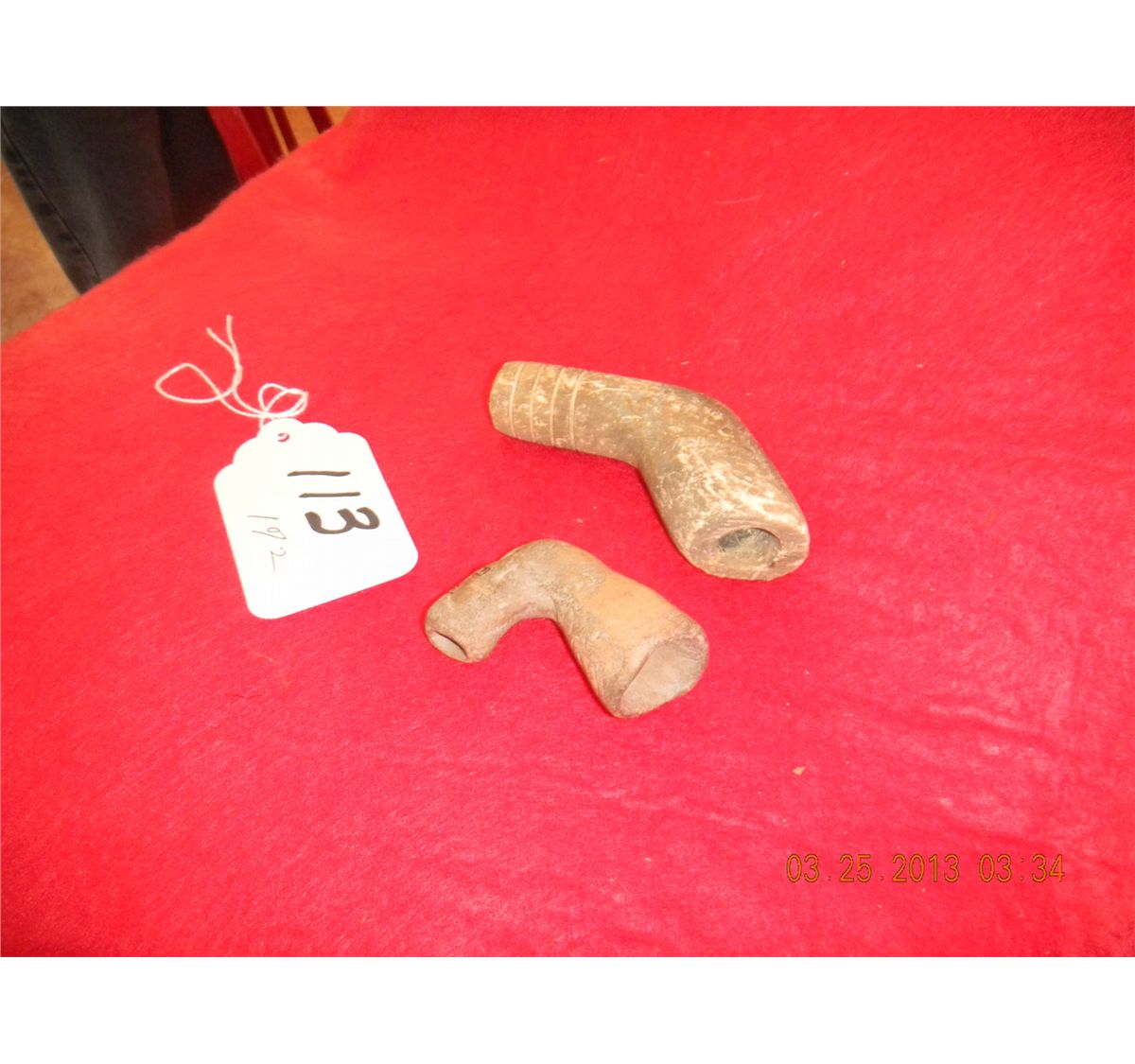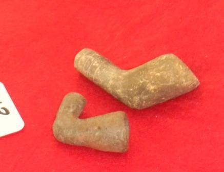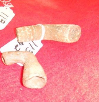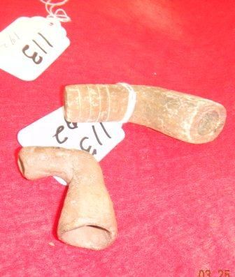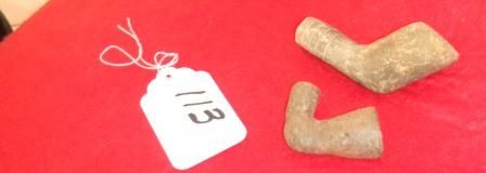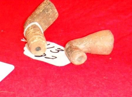 Two Prehistoric Missouri Pipes, one measures 3 by 2 inches and one measures 2 by 2 inches. Condition worn. Circa 2000 AD. Shipping $18.00