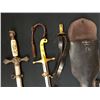 For sale in this lot are two presentation swords. Presentation swords are swords that were usually presented to officers out of respect and recognition of service or deed. Many were presented from donations taken up by soldiers of the rank and file serving under them (in gratitude for not getting them killed) or family, relatives, and friends. One sword is an antique masonic presentation sword made by the Henderson Ames Co. Kalamazoo, MI. It has a ivory or bone handle with masonic and a cross scrimshaw. The other sword is a fairly modern United States Marines presentation sword made by NS Meyer Inc. Maker: Henderson Ames Co. and NS Meyer Inc. Approx. Age: Antique on masonic sword, Fairly modern on Marine sword. Size: Swords are 5-1/2 inches wide X 37 and 40-1/2 inches long. Case is 8 inches wide X 43 inches long. Condition: Good for their age, normal wear expected. Please look closely at the pictures - they are an important part of our description. Shipping: There will be a $10 handling / packaging fee for shipping this lot. The actual cost of postage will be added on top of that. BUY IT NOW: If you would like to buy this item now without waiting for the auction to end (this option is only available up to 48 hours before the auction starts to close), the “Buy it Now” price is the high estimate of this lot. If you would like to end the auction early and pay the high estimate (plus applicable fees), please contact us by phone or email and reference this lot number.