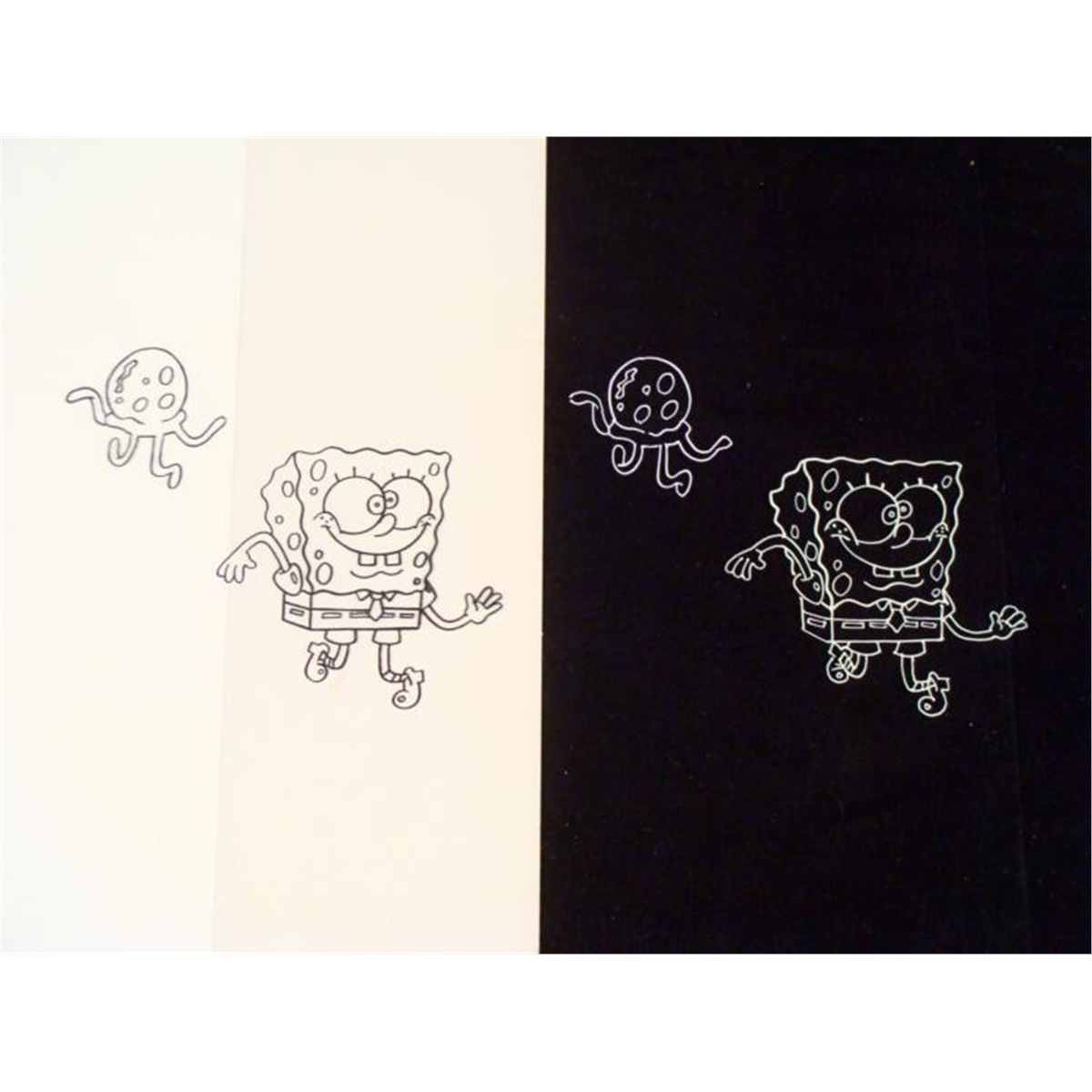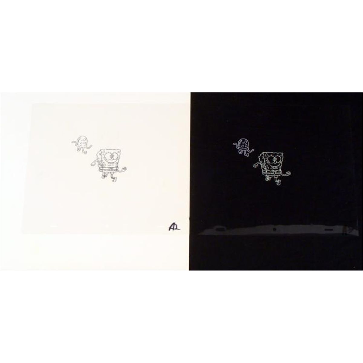 Normal 0 false false false MicrosoftInternetExplorer4 /* Style Definitions */ table.MsoNormalTable{mso-style-name:"Table Normal";mso-tstyle-rowband-size:0;mso-tstyle-colband-size:0;mso-style-noshow:yes;mso-style-parent:"";mso-padding-alt:0in 5.4pt 0in 5.4pt;mso-para-margin:0in;mso-para-margin-bottom:.0001pt;mso-pagination:widow-orphan;font-size:10.0pt;font-family:"Times New Roman";mso-ansi-language:#0400;mso-fareast-language:#0400;mso-bidi-language:#0400;}This original animation cel is from the Nickelodeon TV showSpongeBob Squarepants. The story takes place under the deep blue seain Bikini Bottom, where SpongeBob resides. SpongeBob, who is a yellow,porous sponge, is your typical happy-go-lucky character, as he is alwayscheerful and enjoys making people laugh. Patrick Star, SpongeBob's neighbor whois a starfish, is your average children's show idiot, as he boasts knowingnothing and is often getting himself into ridiculous situations. Between the homesof these two lies the home of the miserable Squidward, a squid, who is knownfor being grouchy and playing tricks on SpongeBob and Patrick. Both SpongeBoband Squidward work at the Krusty Krab, a fast food business run by the greedymoney-loving Mr. Krabs, a crab, the arch rival of the evil, possiblymisunderstood, Plankton. Another neighbor, Sandy Cheeks, an athletic squirrelwho normally wears an astronaut's space suit, was introduced in "Tea atthe Treedome." She spends most of her time inventing andexperimenting. * Offered here are two similar cels. In appears that Spongebob and his Jelly companion are doing the wave. * * Original Production Animated Cel Overall Size of Cel: 10 1/2" x 12 1/2" Excellent ConditionThis is an original hand-painted cel set-up used in the productionof an episode of "SpongeBob SquarePants." Each one-of-a-kind set-uprepresents a slight change in position of the characters. When individuallyphotographed and projected in rapid succession, the images appear to move. * To create production cels, the original animator's drawing is transferred ontoan acetate cel (by hand-inking and/or photo copying). The cel is thenhand-painted on the reverse side. * The cel is ready to be matted andframed. The animator's notations are atthe bottom of the cel. *