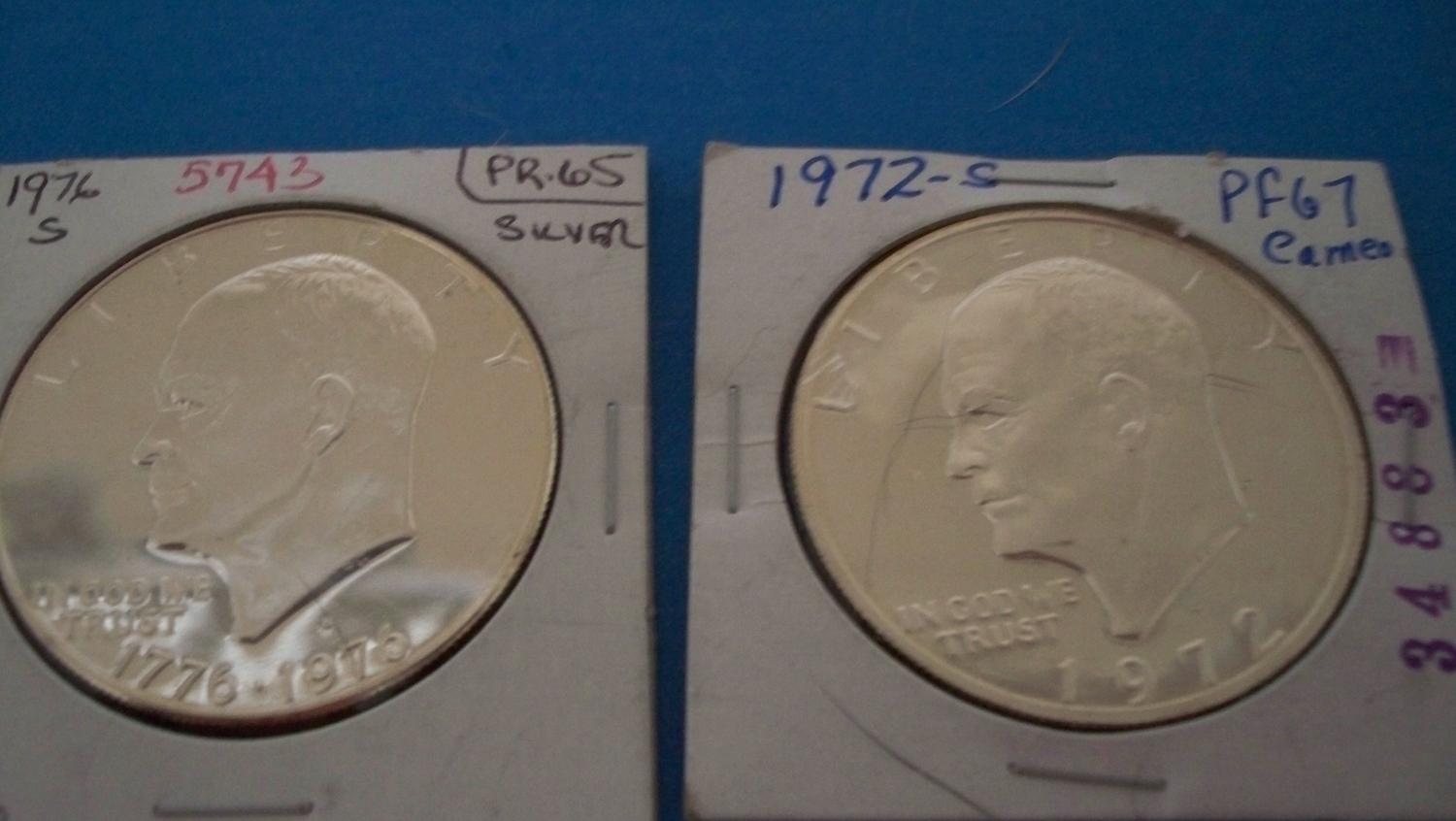 Two Proof Eisenhower Silver Dollars, !972,76