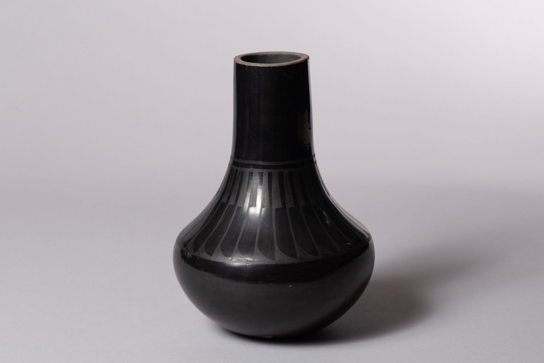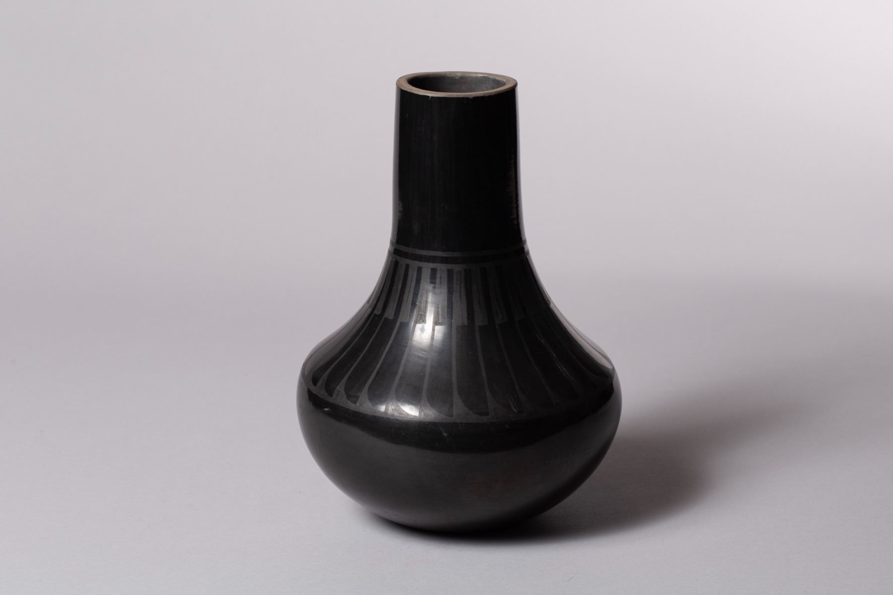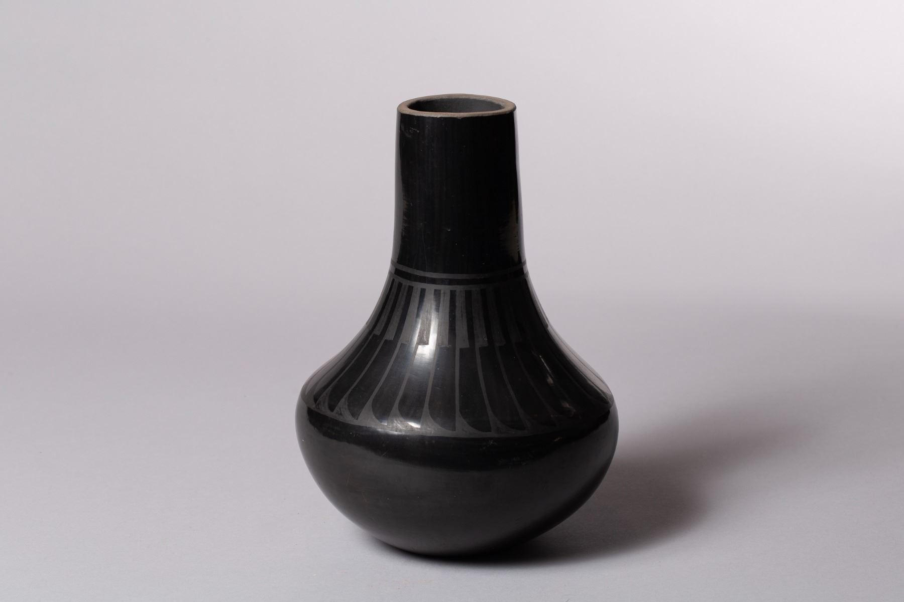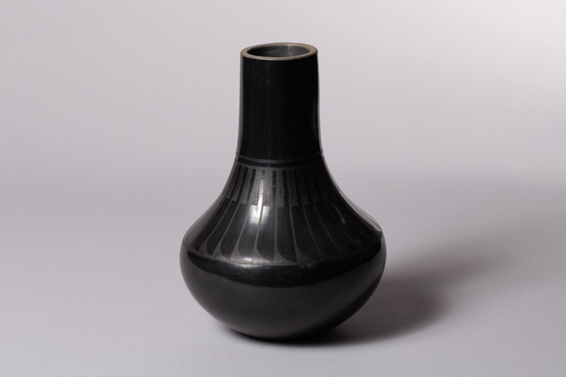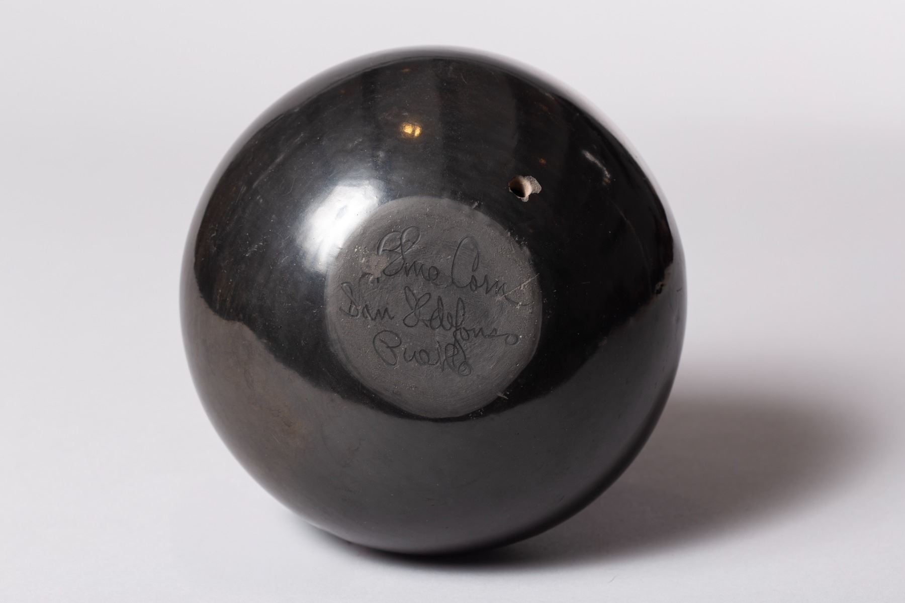 A) San Ildefanso Pueblo Pot by Blue Corn made intentionally heavy and with a small hole near the bottom for use as a lamp base