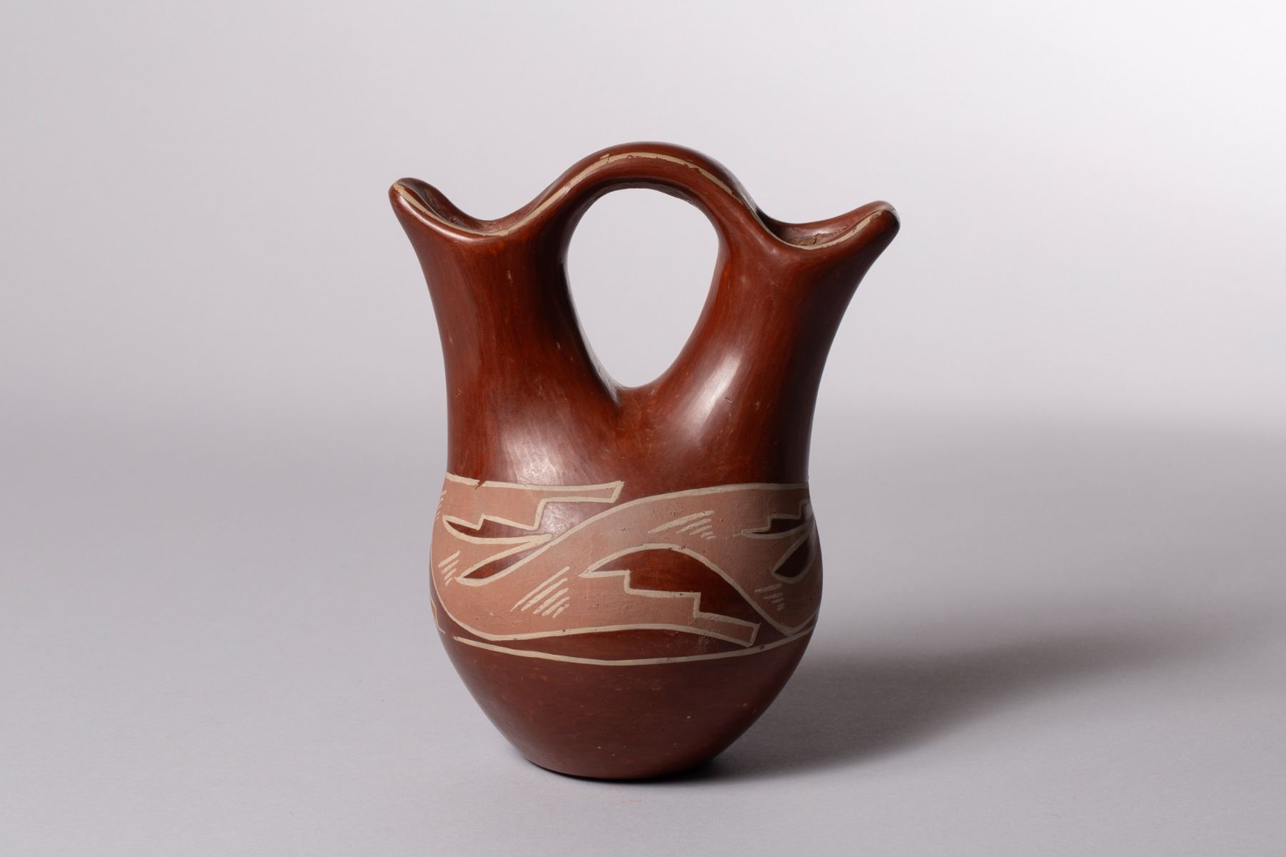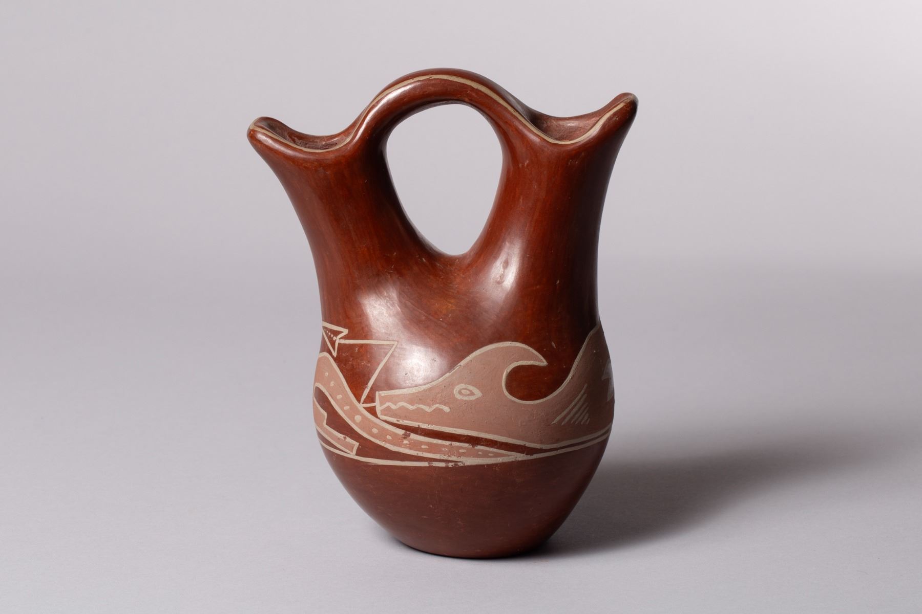 B) Santa Clara Serpent Design Wedding Vase Unsigned with old label "June 1946"