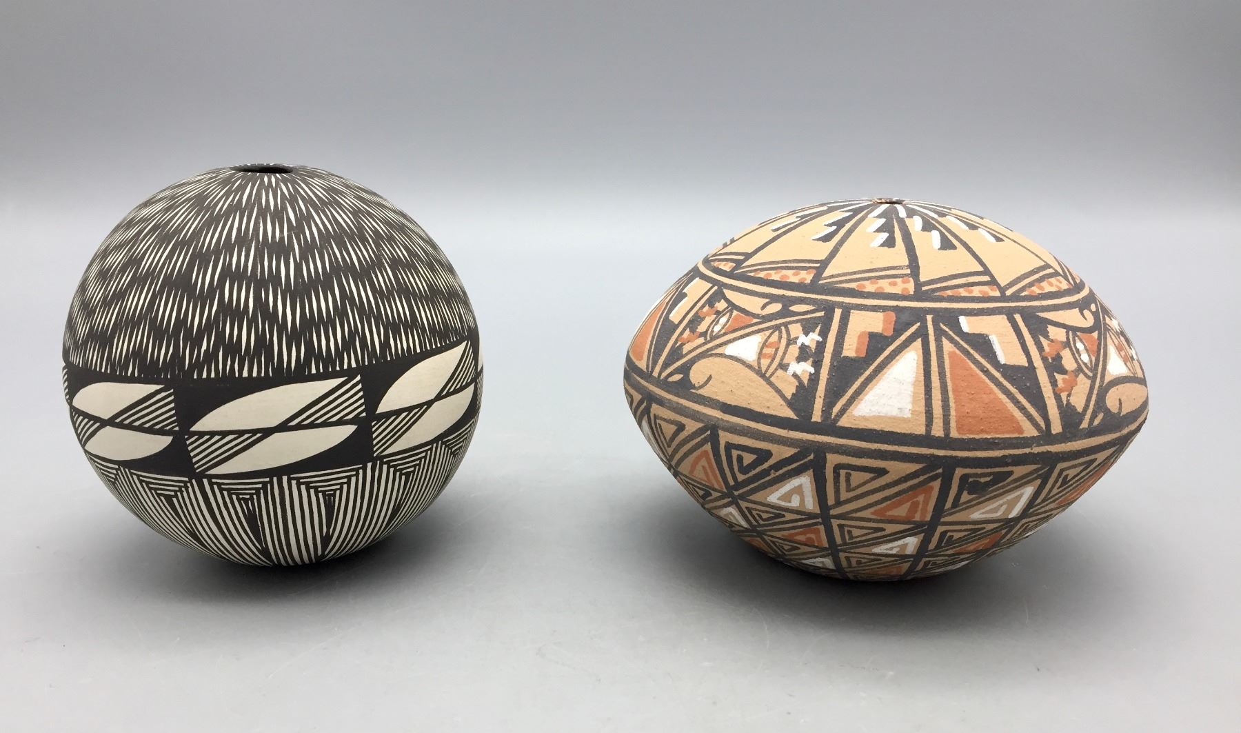 Description: Presented for sale in this lot are two gorgeous, handmade, Pueblo seed pots. Maker: One is made by S. Toya, Jemez, NM. Approx. Age: Fairly modern. Size: 4”w x 3”tall and 3-1/4”w x 3” tall. Condition: Good for their age, normal wear expected. Please look closely at the pictures - they are an important part of our description. Shipping: There will be a $10 handling / packaging fee for shipping this lot. The actual cost of postage will be added on top of that.