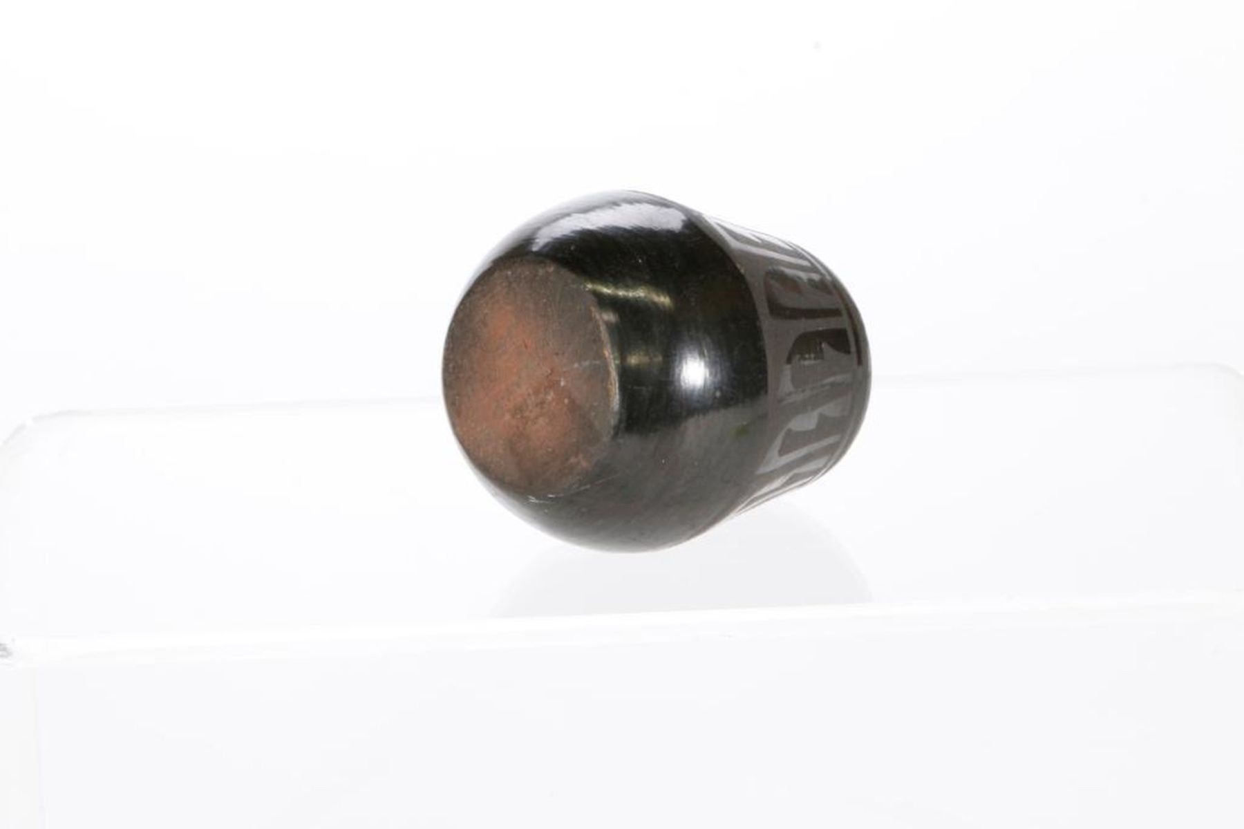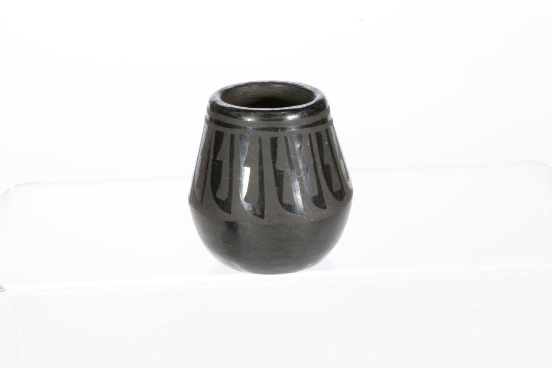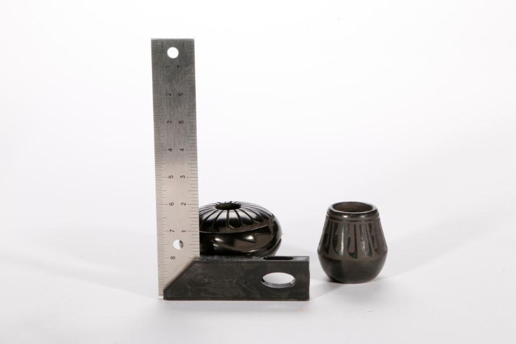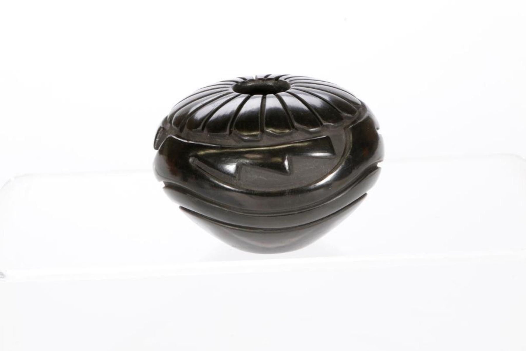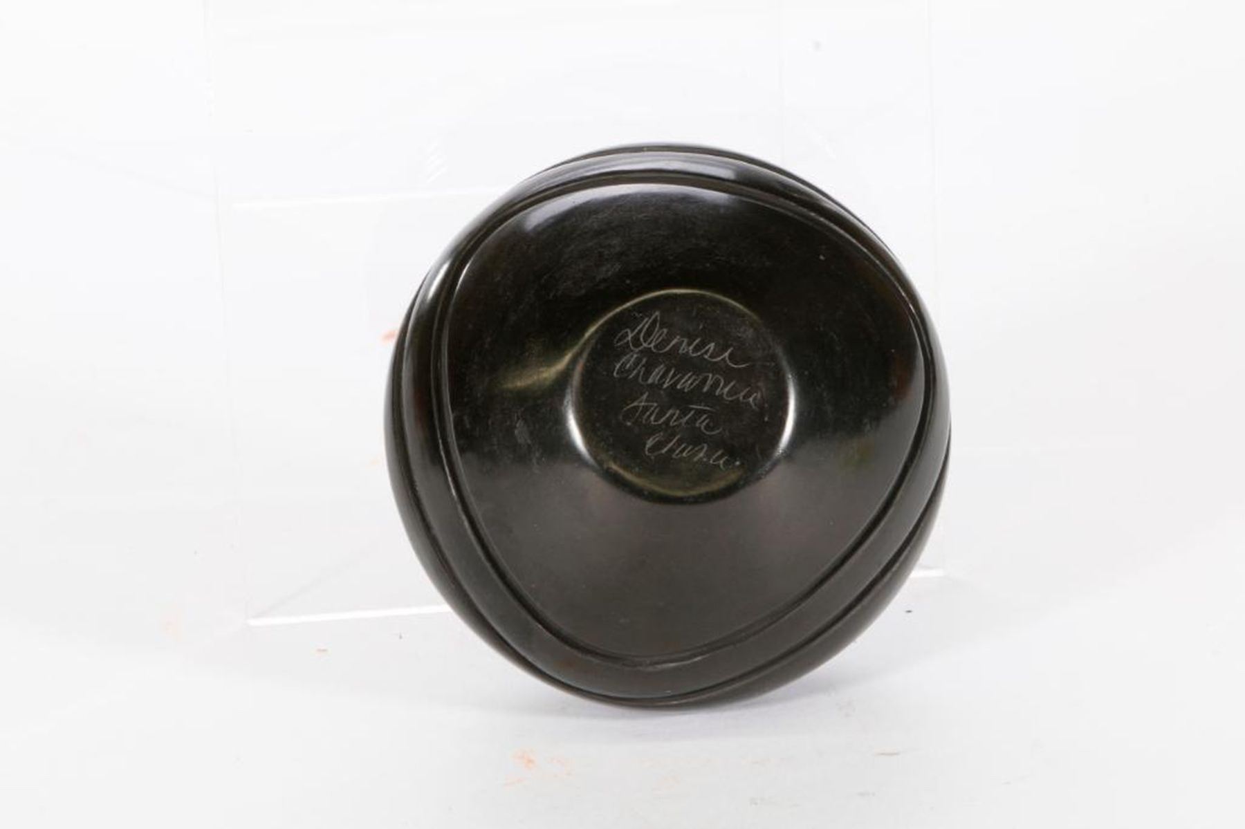 Two Pueblo blackware jars, likely Santa Clara, a carved seed jar by Denise Chevarria and a vase-form example, signature illegible
