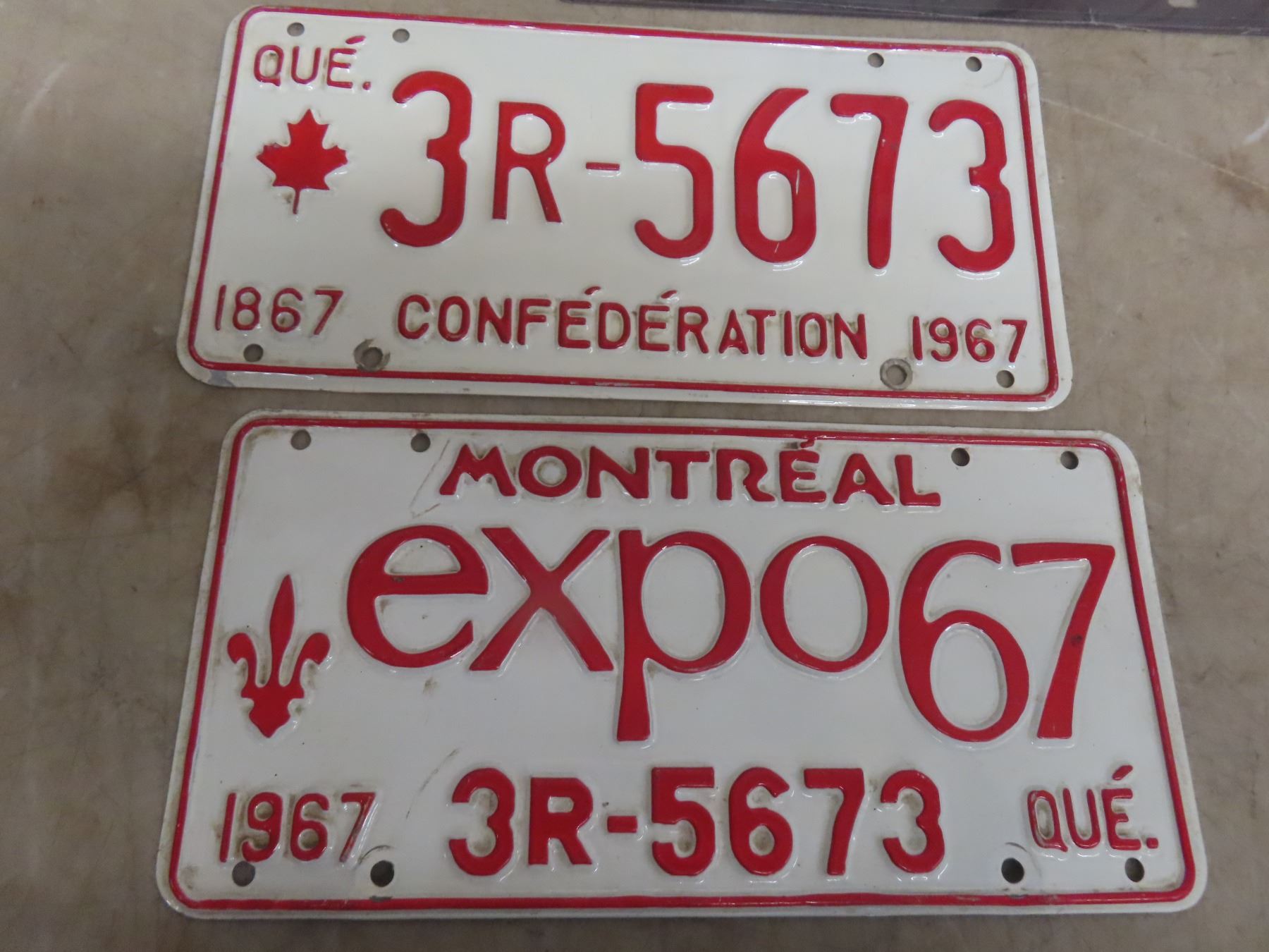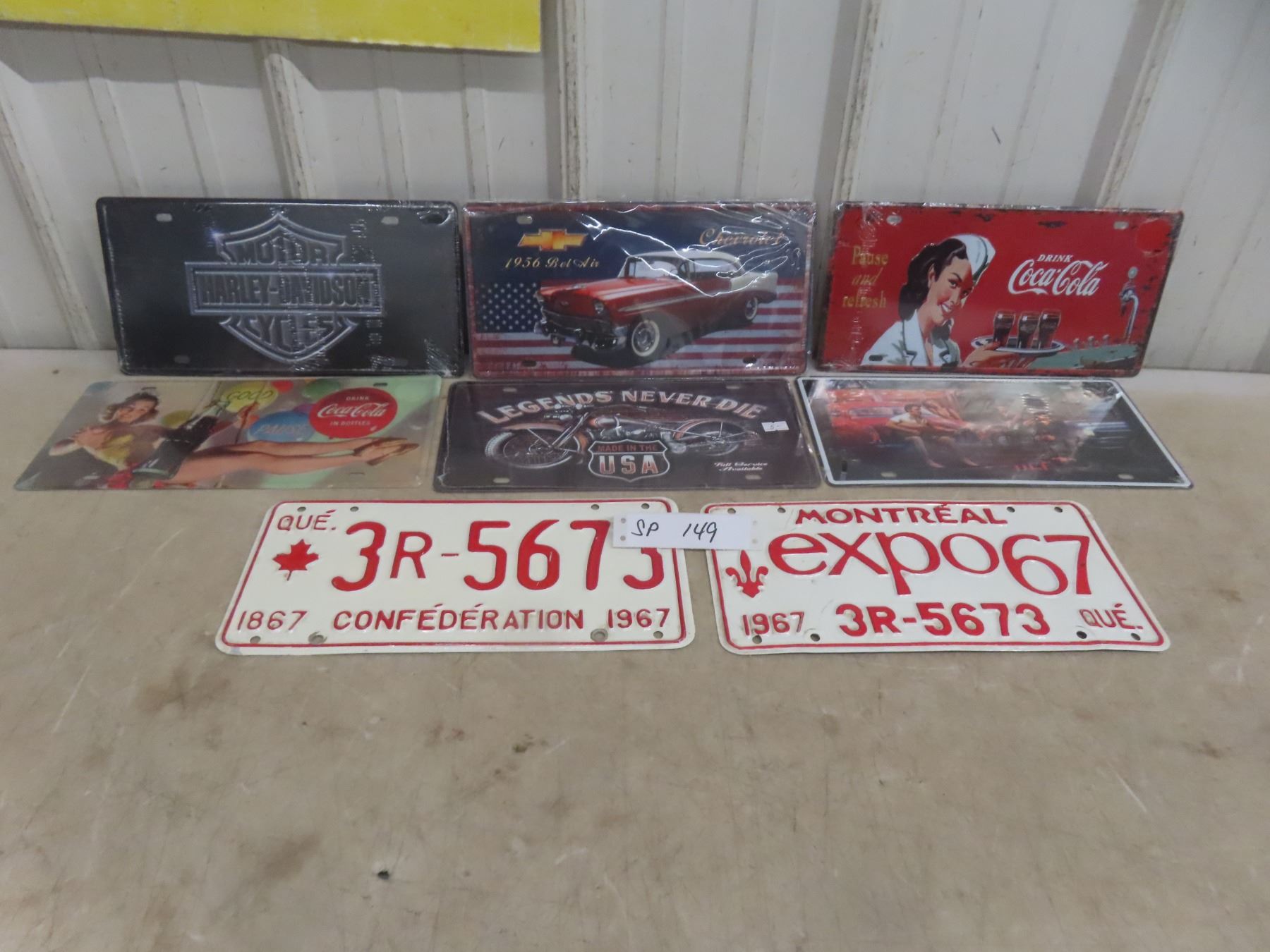 Two Quebec 1967 License Plates and Six Novelty Plates