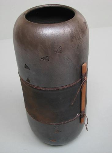 Title: Vase with Incised decoration; Vase with Twine and Wood embellishment