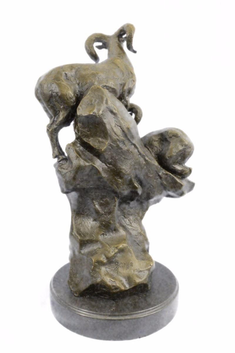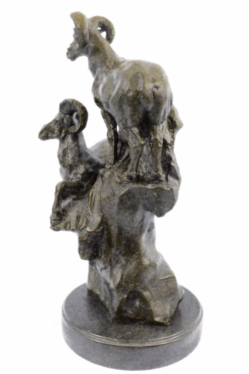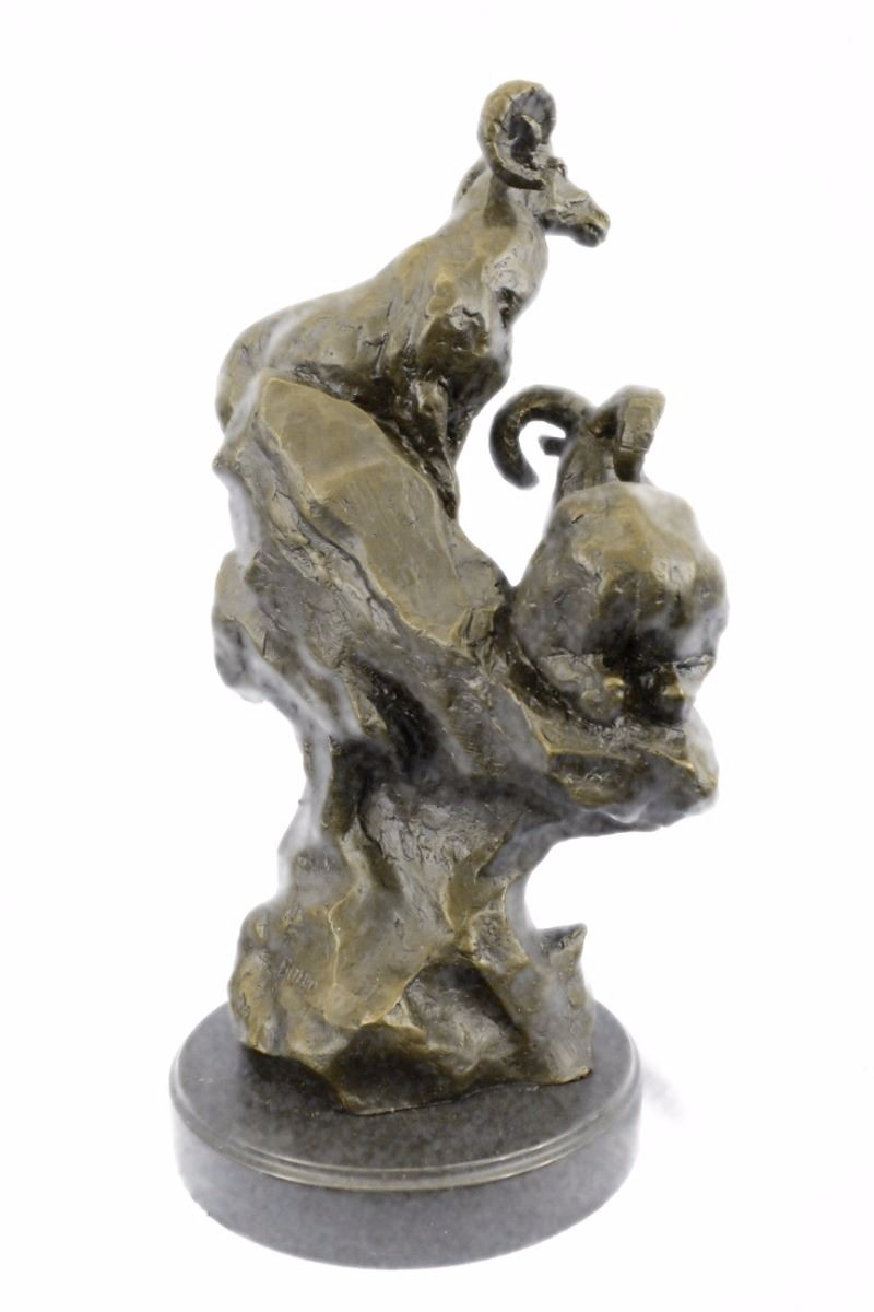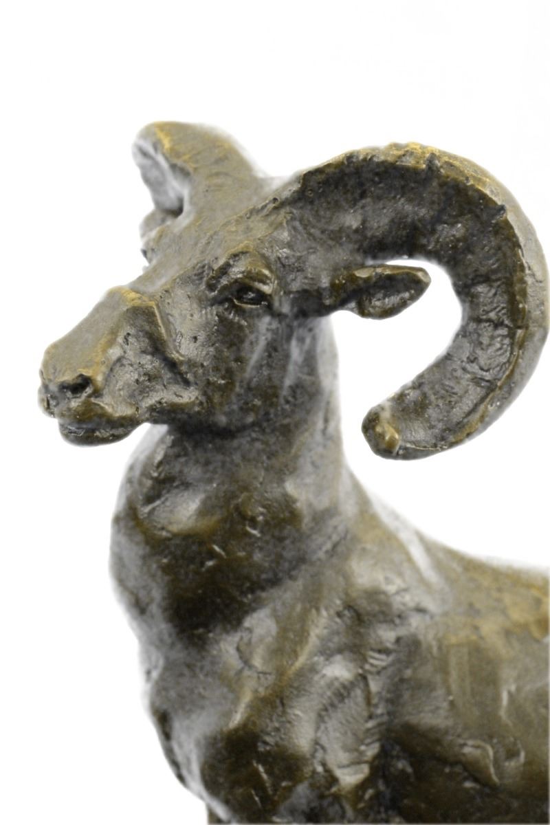 These Two Majestic Rams Resting On The High Cliffs Of A Mountain In A Carefree Manner. The Handmade Bronze Sculpture Was Cast Using The Age-Old Method Of Lost-Wax Casting And Stained With A Brown Patina Finish For Perpetuation. He Is Mounted Upon A Black Circular Marble Base. Bronze Dimensions With Marble Base: Height 19 X Width 12 inches. Weight: 27 Lbs.