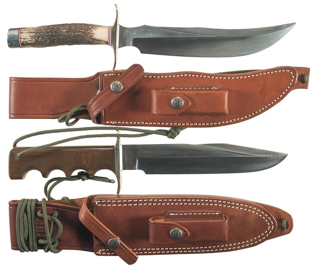 Two Randall Knives with Sheaths, Including a Knife Society Bear Bowie