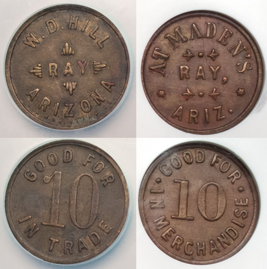 1) At Maden's / Ray / Ariz // GF 10c IM. C1915. AU 55. 2) W.D. Hall / Ray / Arizona // GF 10c IT. C1915.City: RayCounty: PinalState: AZDate: