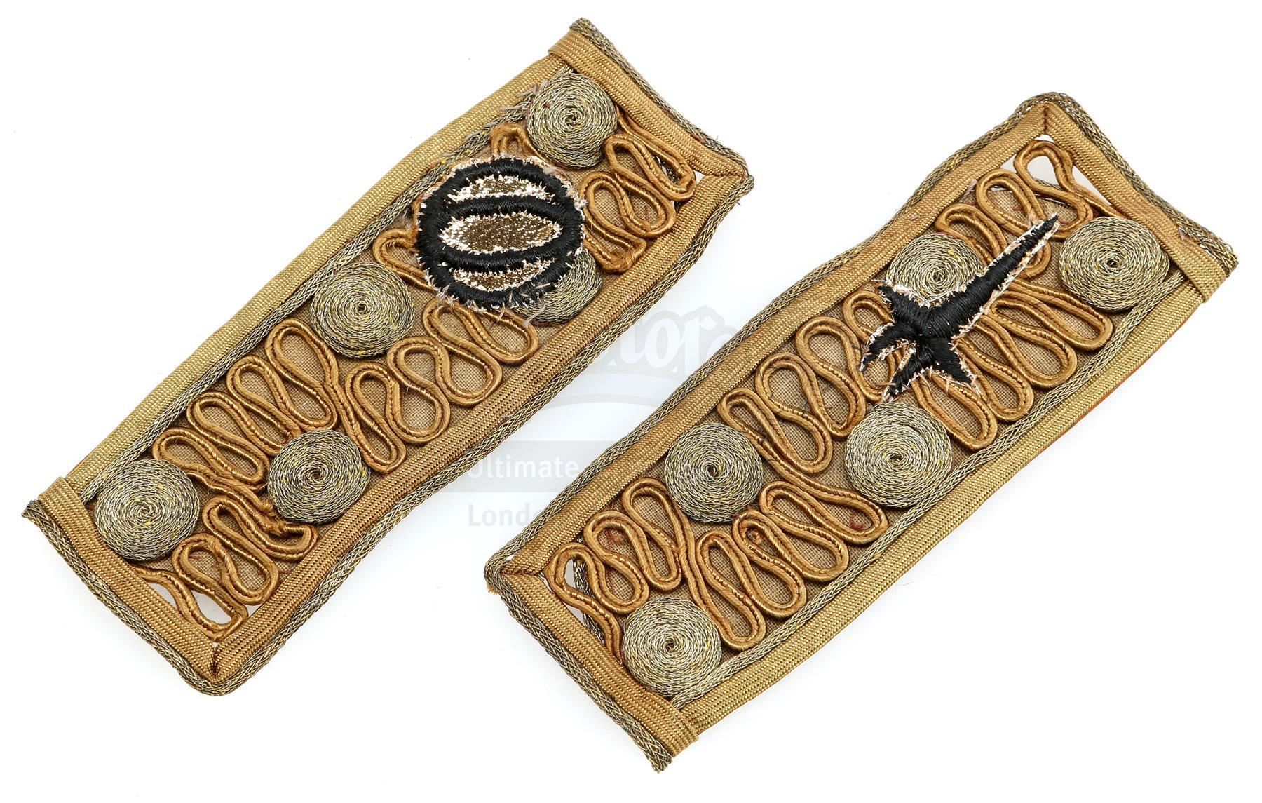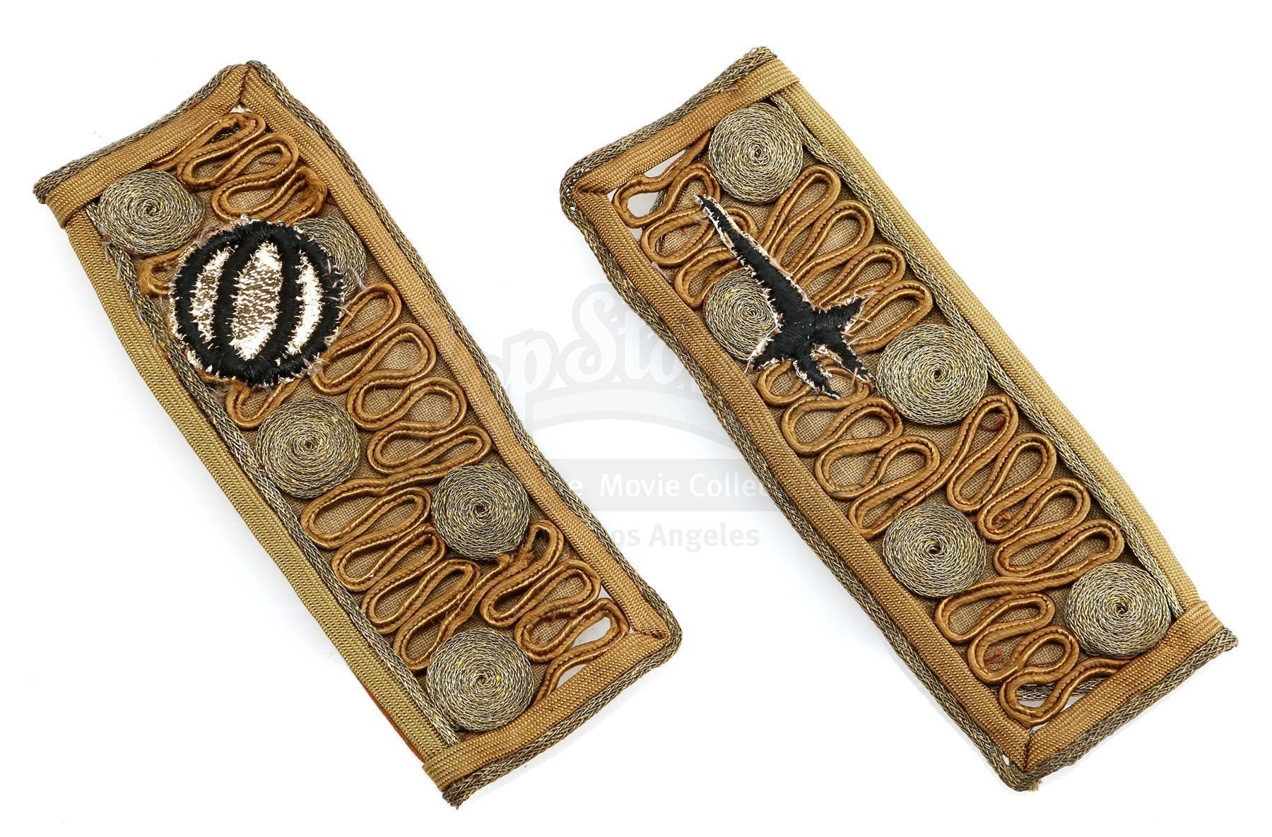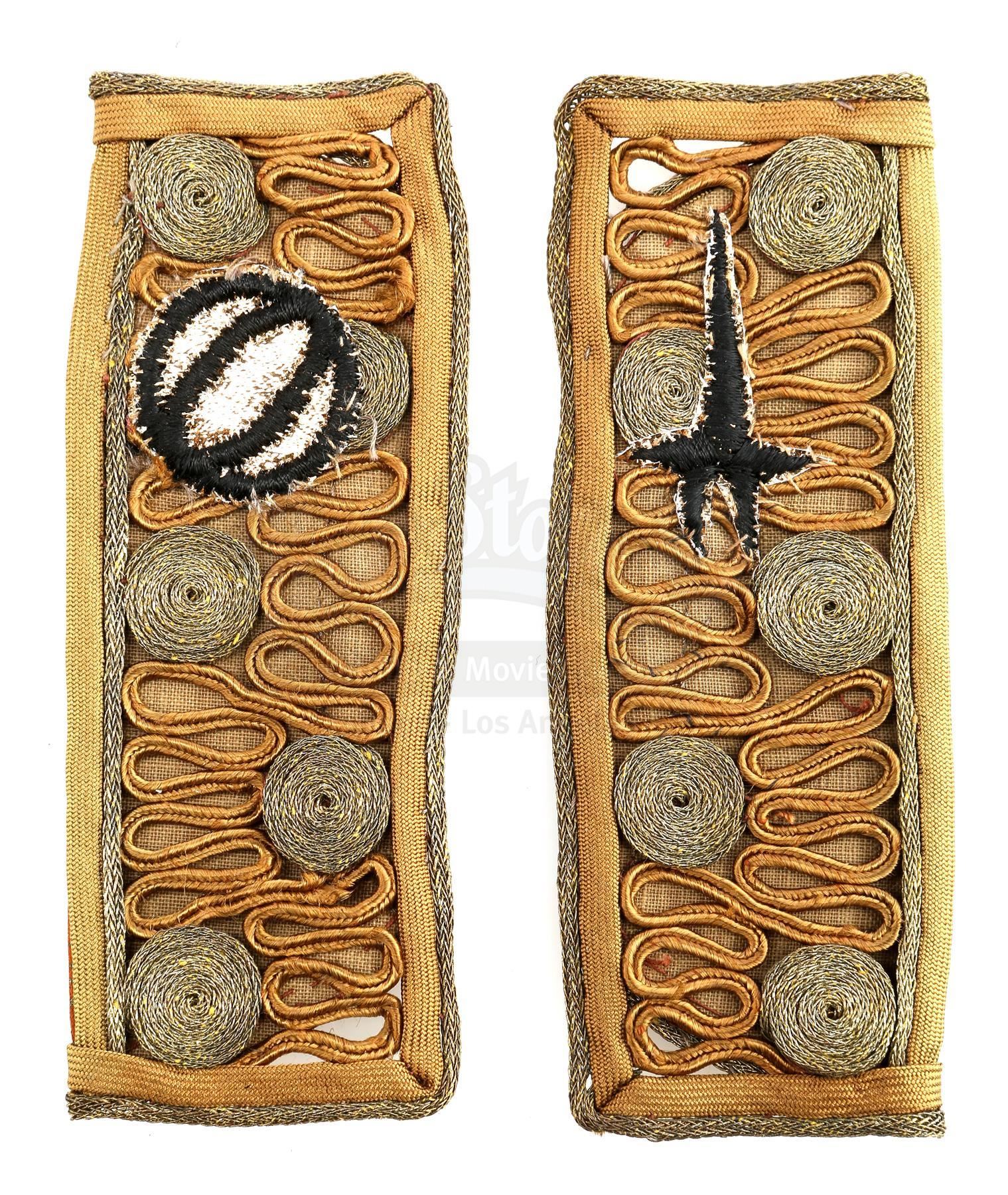 A set of two oblong rectangular insignia patches (one for the Command division, the other for Science) from Gene Roddenberry’s space adventure Star Trek: The Original Series. Each patch features the gold metallic division insignia that is standard to all Starfleet, as well as individualized motifs representing the officer’s field. These patches come from series costume designer William Ware Theiss’ personal collection, having been stored away from the damaging conditions often seen with traditional studio storage. Thereafter, archived by the Comisar Collection, they have been meticulously cared for and stored in a light, climate and humidity controlled fine art warehouse. As a result, they are in very fine vintage condition overall. In the episode ‘The Omega Glory’ (223), Captain Ronald Tracey (Morgan Woodward) wears the Command patch when he has a psychotic breakdown.