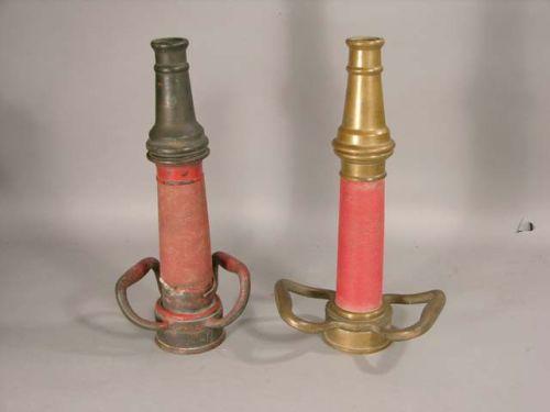 Two red fire nozzles, powhatan B & I works, 15" tall. 1 like new, 1 used. Ranson, W.V.