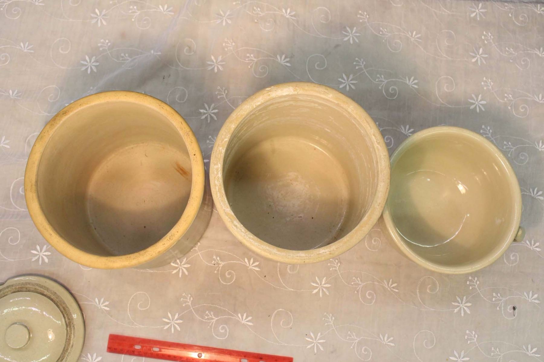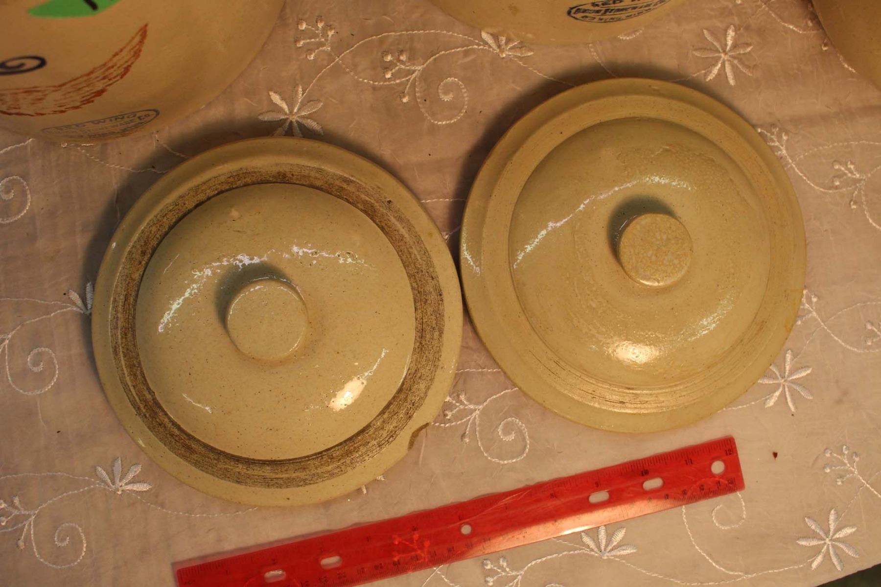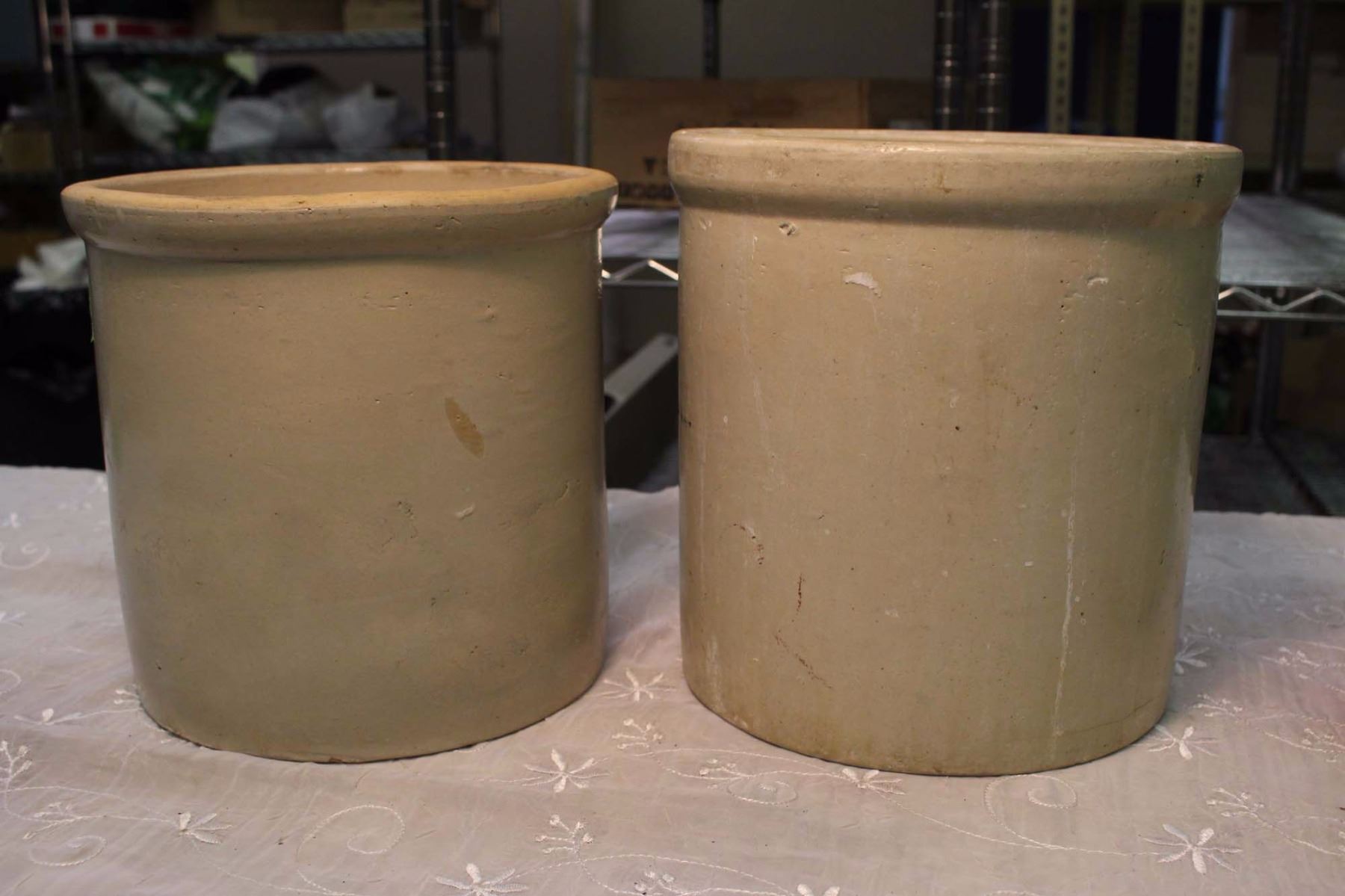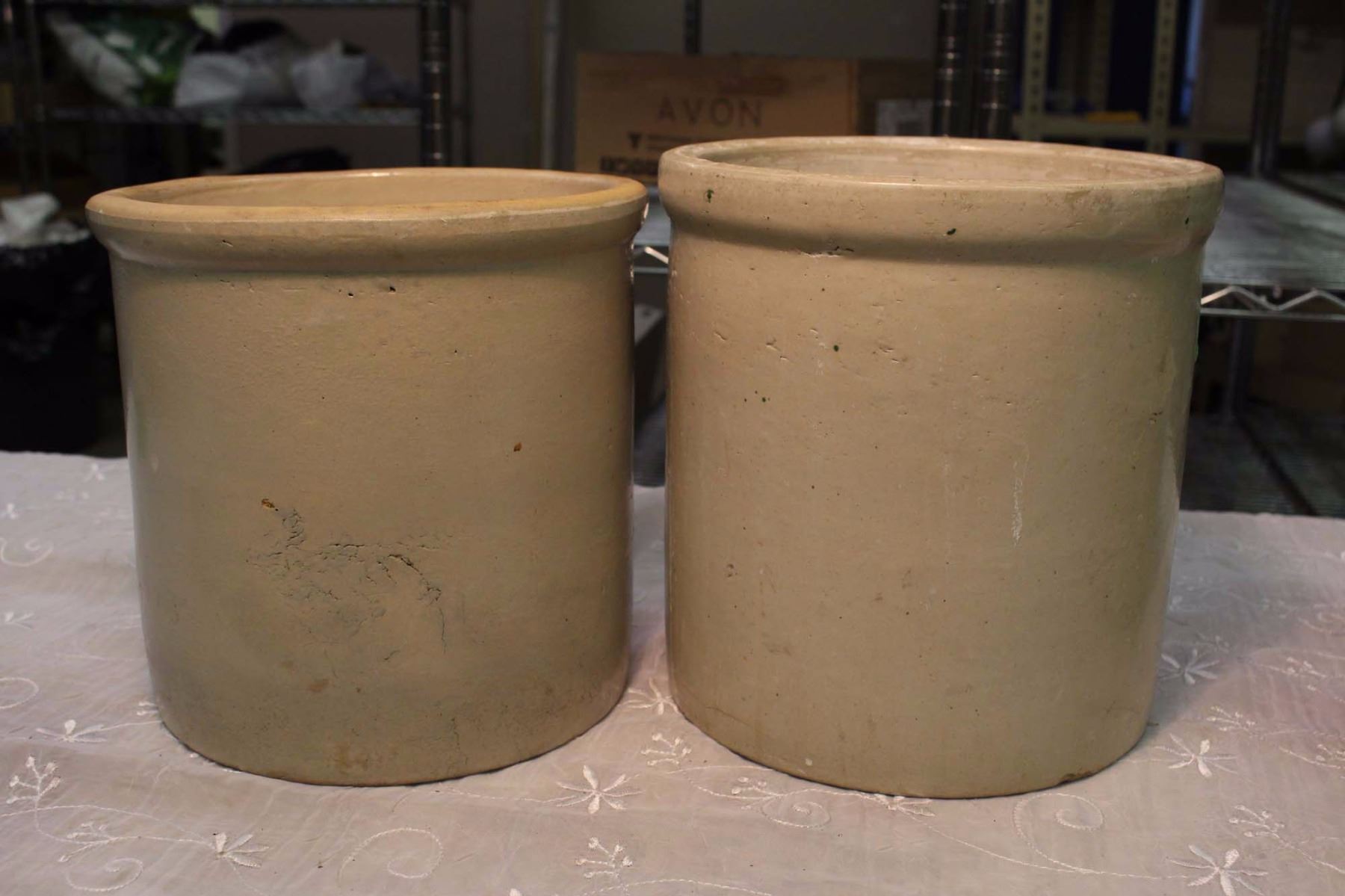 Two Red Wing Crocks (Size 2), Two Crock Lids (Size 1)& Crock Bowl