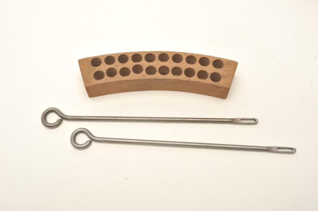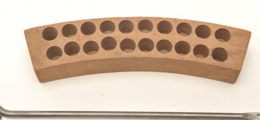 Two Remington cleaning rods for the .50 caliber pistol plus an empty old wood cartridge block. Est.: $50-$100.
