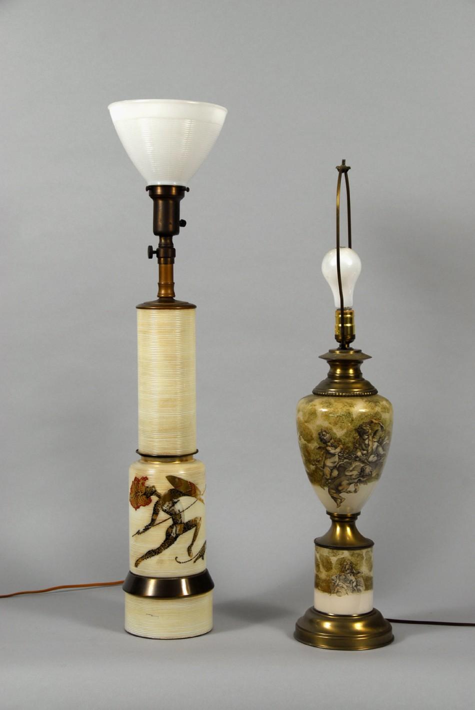 Two Retro Glass Table Lamps Each with Painted Decorations.