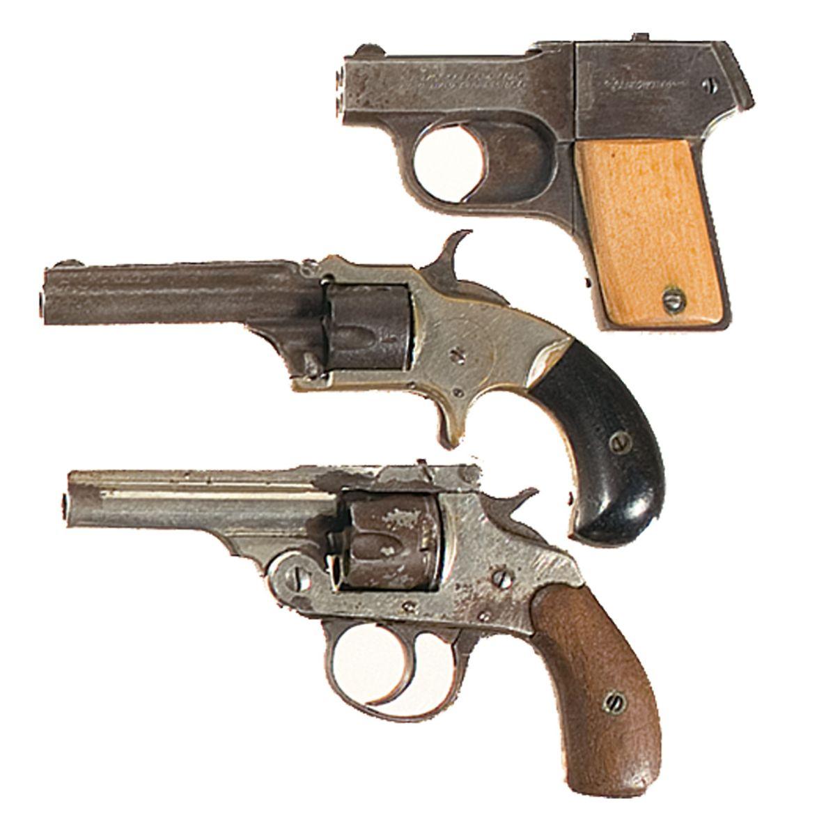 B) Made 1873-1876. Fixed sights, standard markings, checkered hammer and smooth grips. Latch broken, ejector absent.