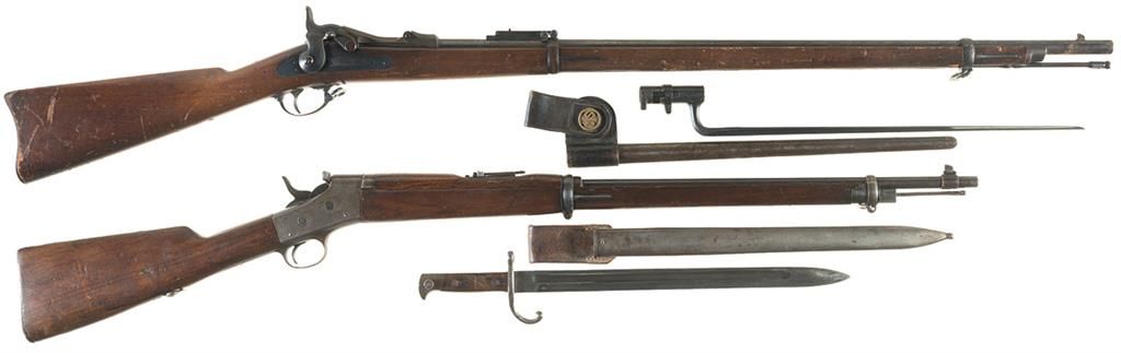 Two Rifles -A) U.S. Springfield Model 1879 Trapdoor Rifle with Bayonet