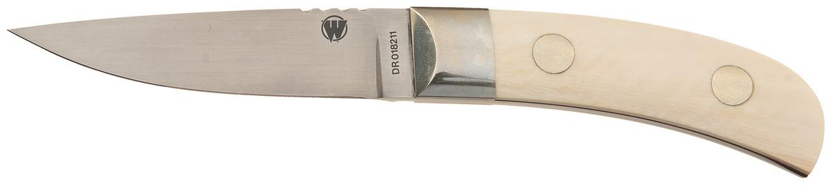 This lot consists of knives handcrafted by Robert Washburn. Each knife has the Washburn Knives circled "W"1) A knife with a 3 5/8 inch blade marked, with "DR018211" on the ricasso. Spine has some file work. Silver bolster with ivory scales with two rivets. Oal: 7 3/8". 2) A knife with a 3 3/8 inch blade, silver bolster, and horn scales with rivets. OAL: 7 1/8". Joining the American Bladesmith Society in 1996, Washburn obtained his Journeyman Smith rating in 2000.