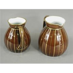 Two Rockingham jugs, each with gilt lining on brown glazed bodies, bases with Griffin marks, tall...