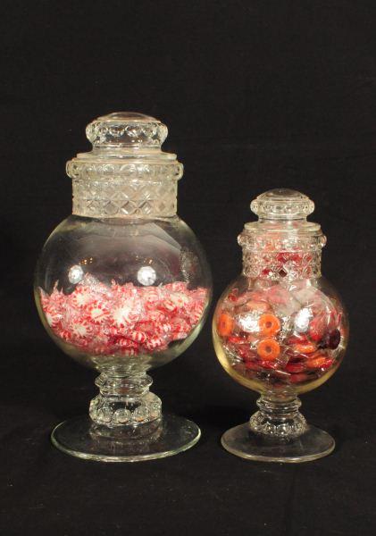 Two Round Candy Jars, Larger Measures 15" Tall, Smaller Measures 11" Tall