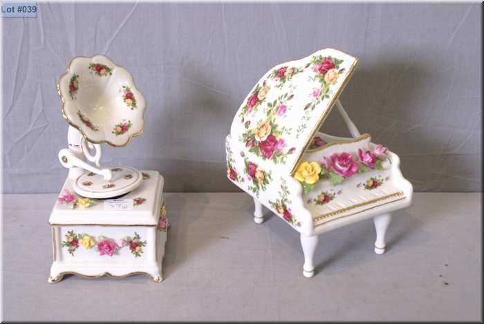 Two Royal Albert "Old Country Roses" including piano and gramophone, both music boxes